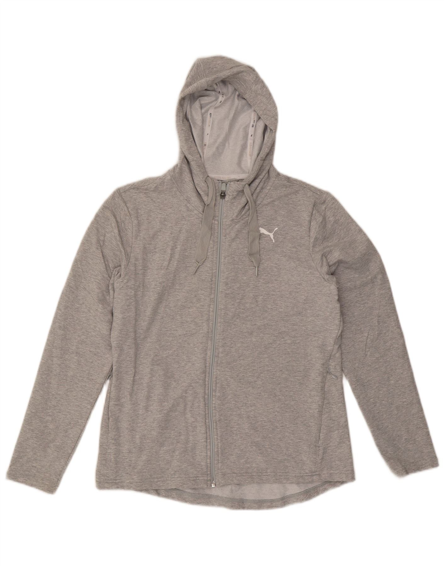 Suéter feminino PUMA com capuz e zíper gráfico UK 12 algodão cinza médio