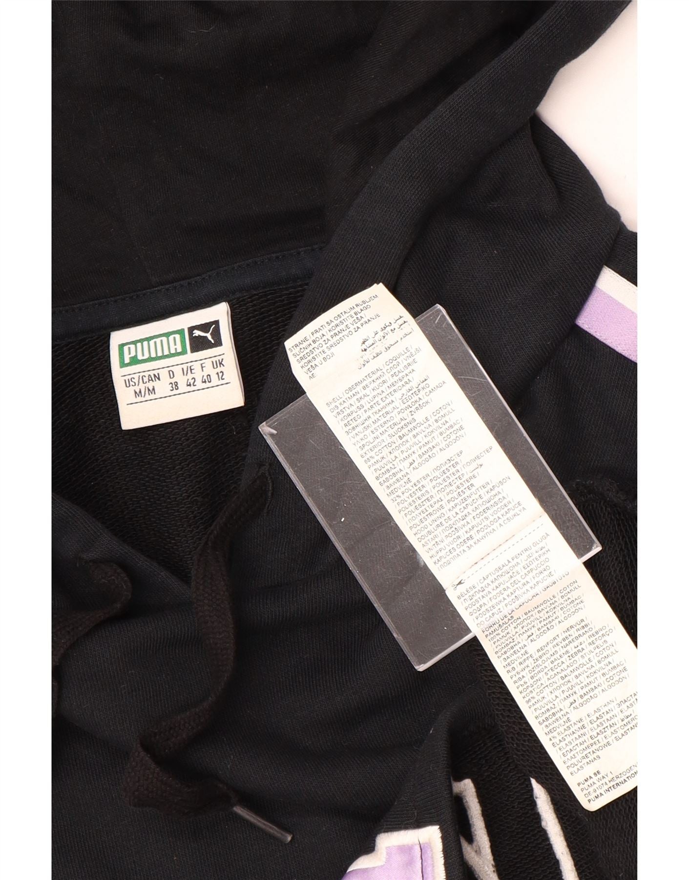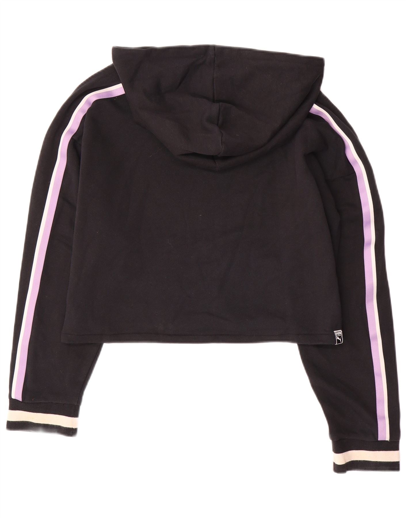 PUMA feminino oversized crop moletom com capuz UK 12 médio preto colorblock