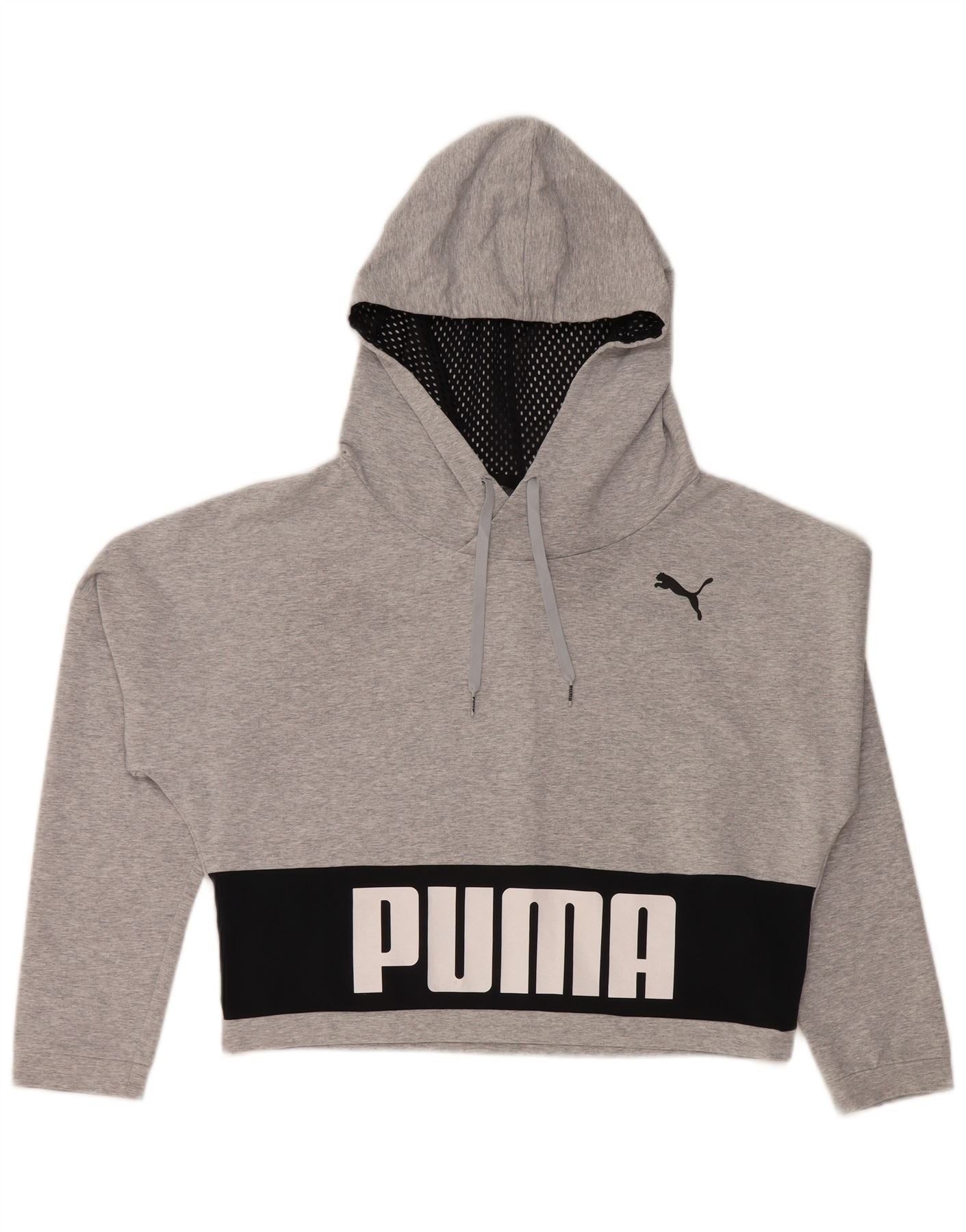 Suéter PUMA feminino com capuz oversized UK 12 cinza médio colorblock