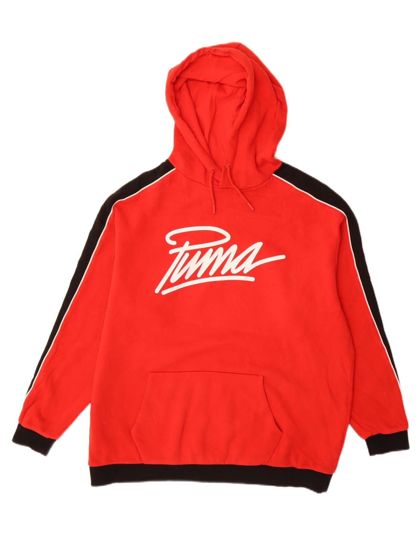 Suéter feminino PUMA com capuz gráfico oversized UK 14 grande bloco colorido vermelho