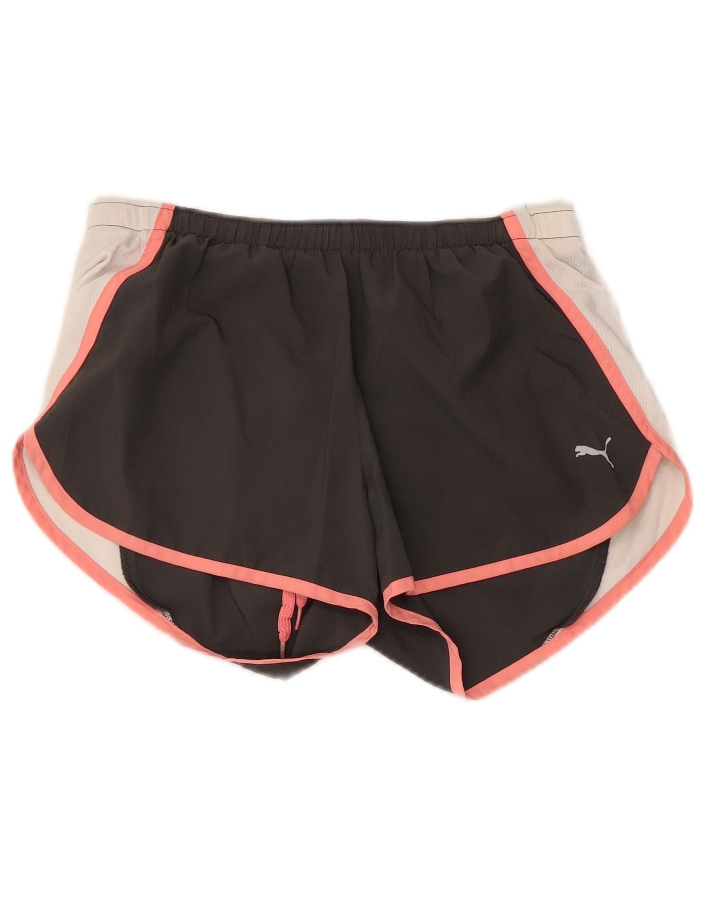 Shorts esportivos femininos PUMA UK 10 pequeno preto colorblock poliéster