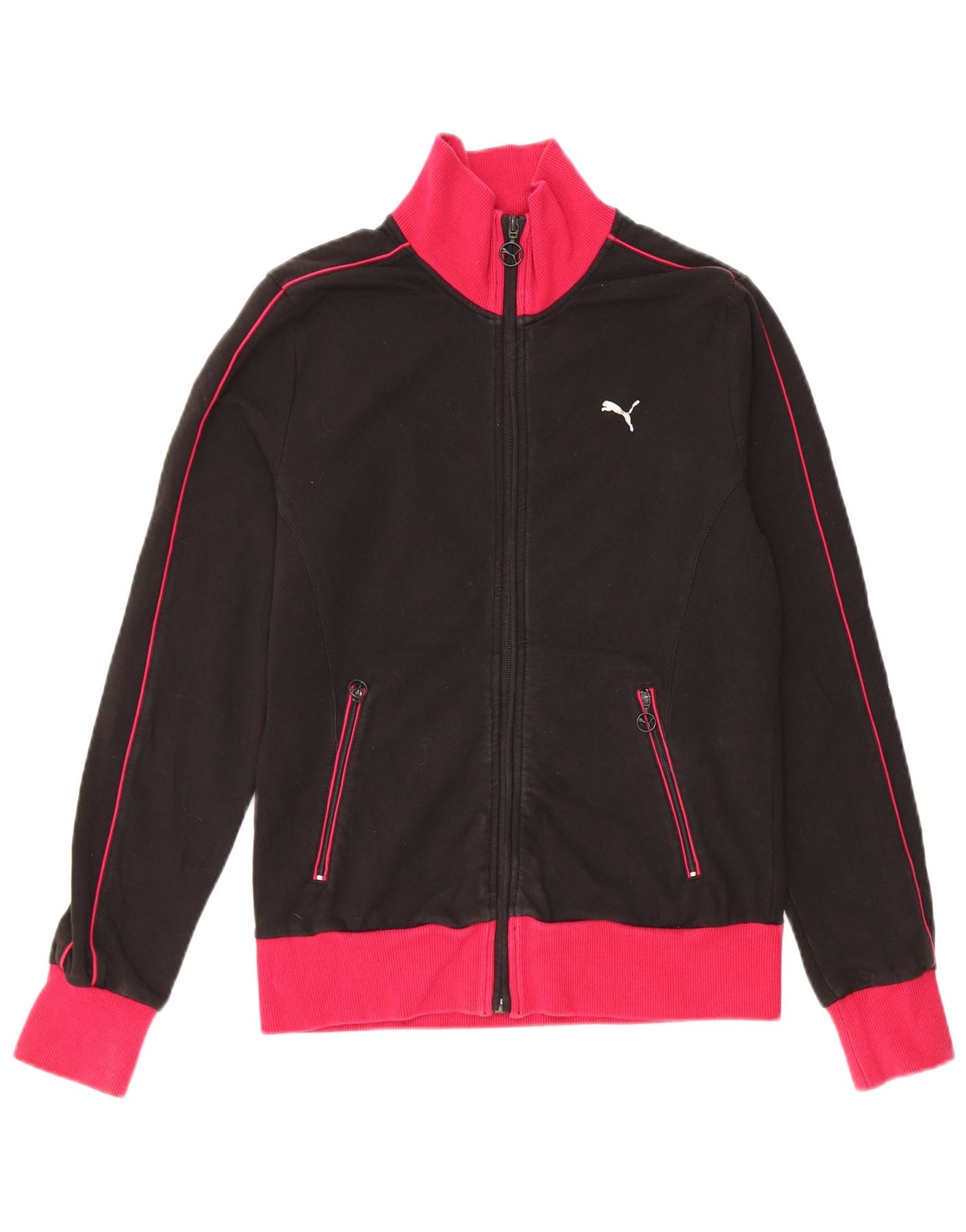 PUMA Womens Tracksuit Top Jacket UK 12 Médio Preto Colourblock Algodão