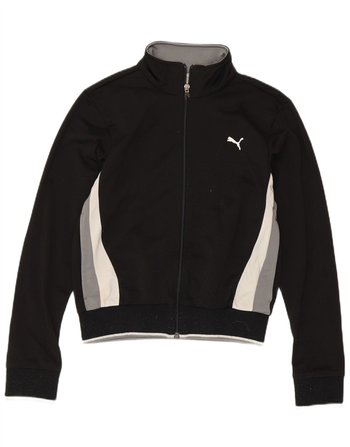 PUMA Womens Tracksuit Top Jacket UK 8 Pequeno Preto Colourblock Poliéster