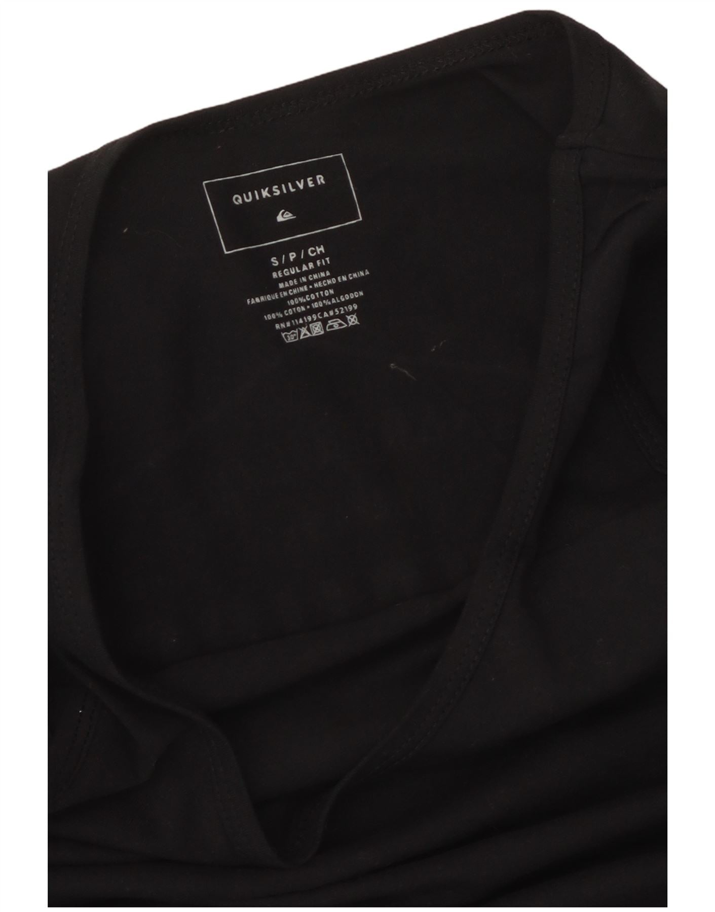 Colete gráfico masculino Quiksilver Top pequeno de algodão preto
