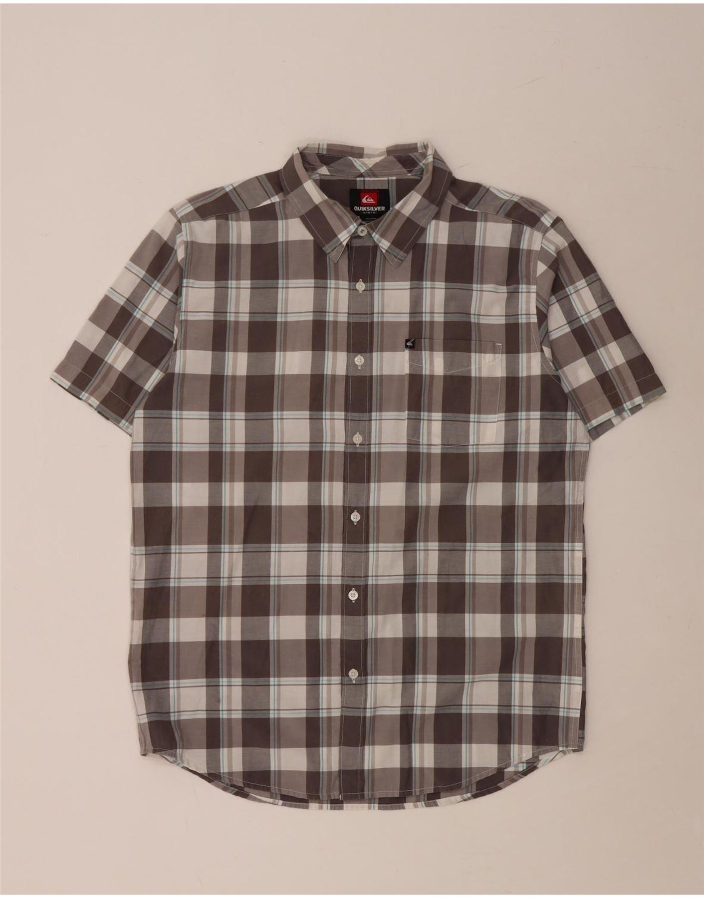 Camisa masculina de manga curta QUIKSILVER algodão xadrez cinza médio