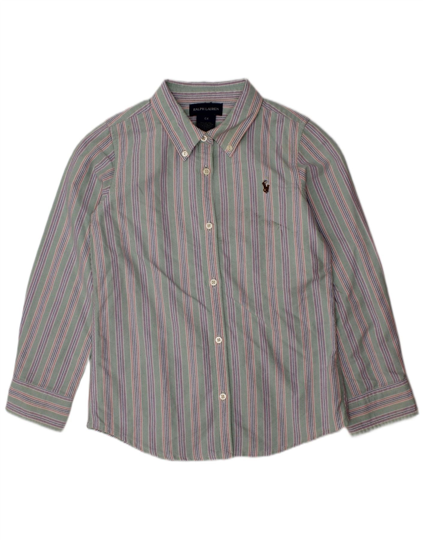Camisa de flanela masculina RALPH LAUREN 5-6 anos algodão listrado verde
