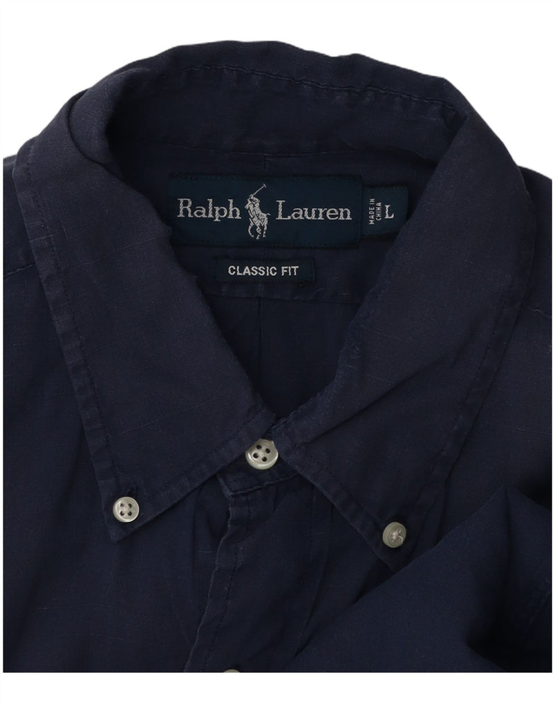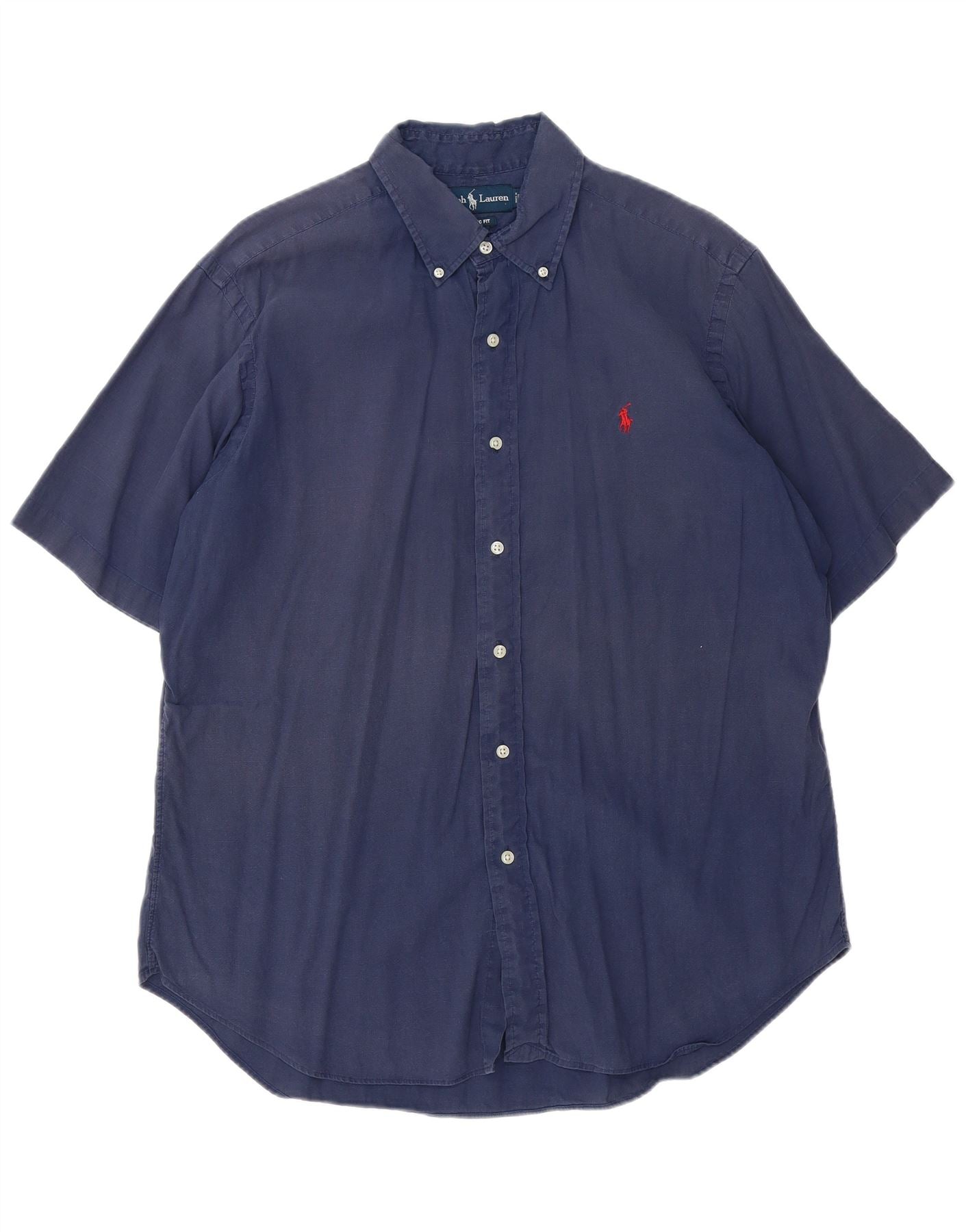 RALPH LAUREN Camisa masculina clássica de manga curta grande linho azul marinho