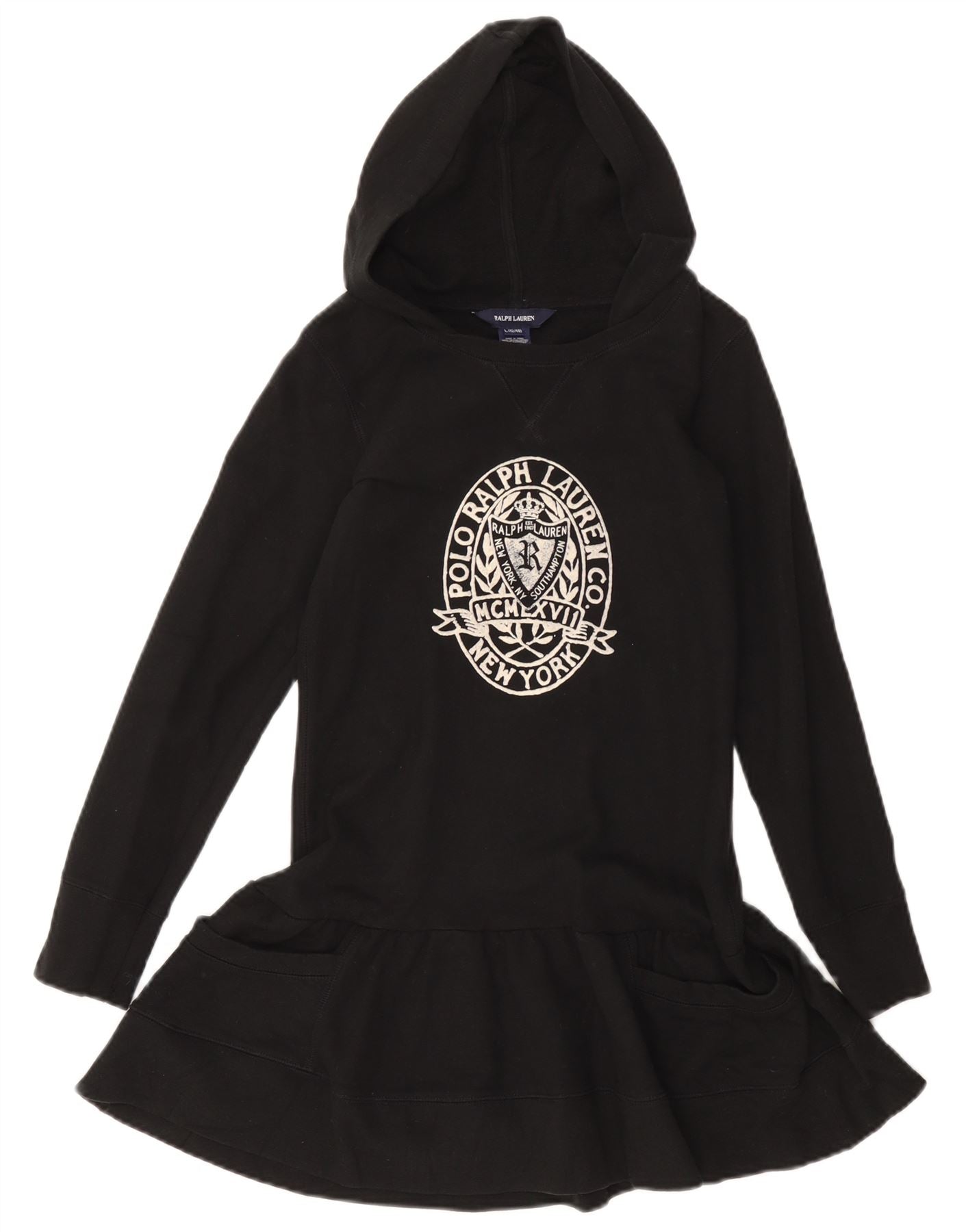 Ralph Lauren Vestido feminino estampado com cintura baixa 12-13 anos grande algodão preto