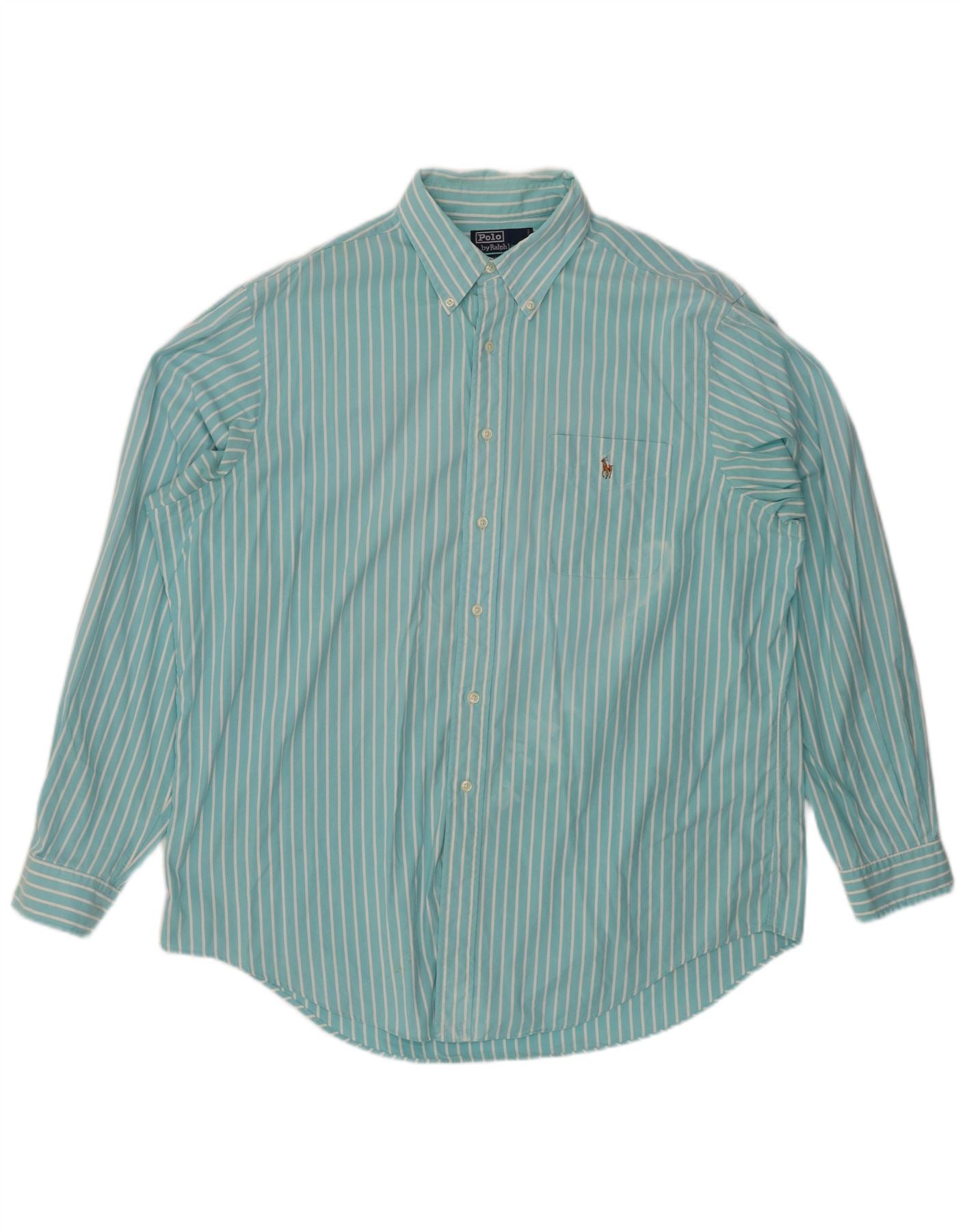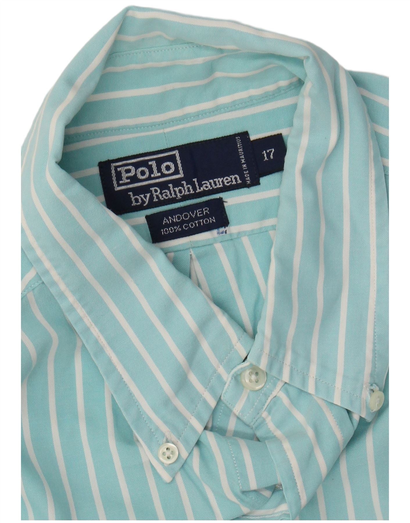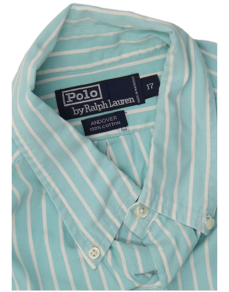 Camisa masculina Andover RALPH LAUREN tamanho 17 XL algodão listrado turquesa