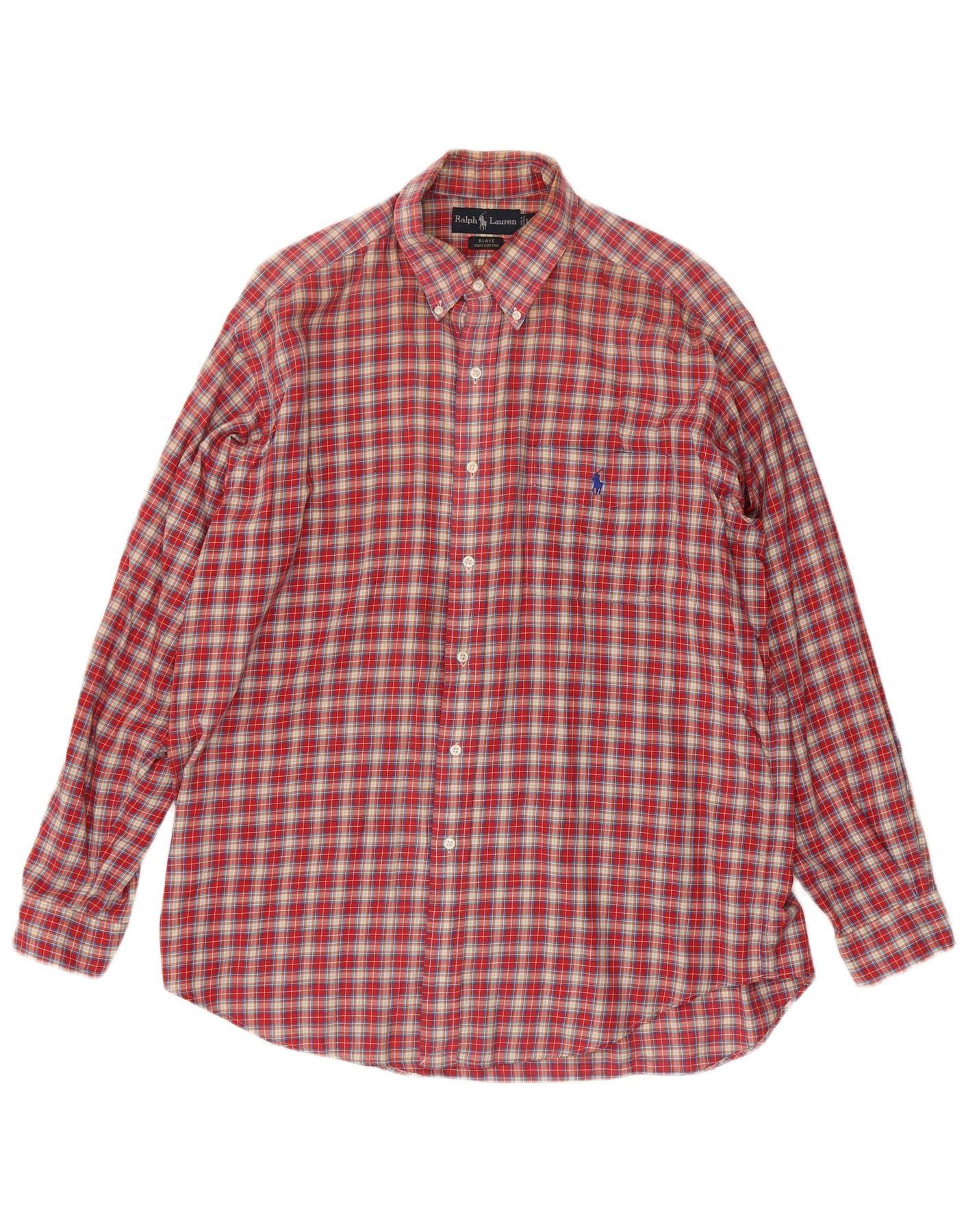 RALPH LAUREN Camisa masculina de flanela Blake Loose Fit grande algodão xadrez vermelho