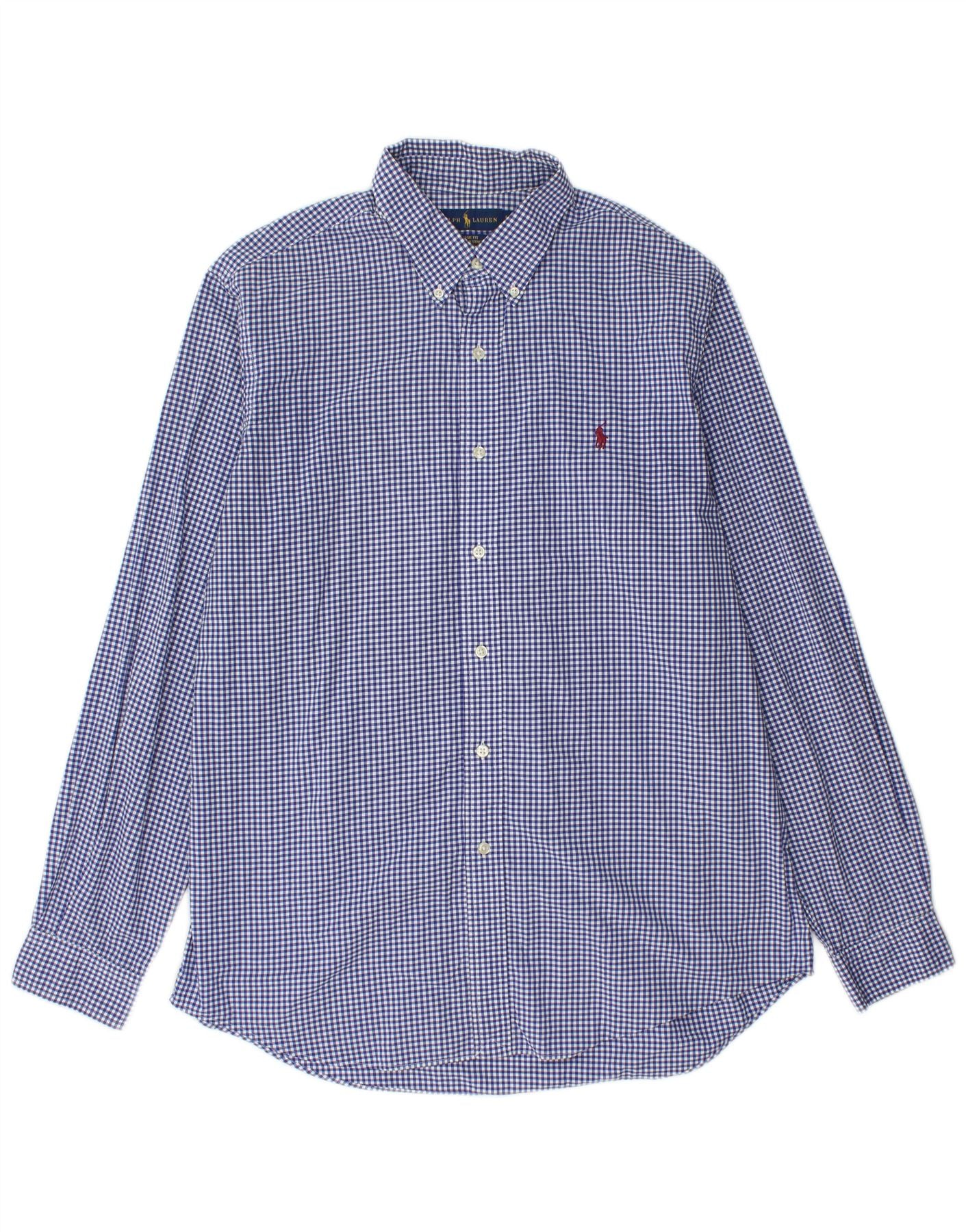 RALPH LAUREN Camisa masculina clássica de ajuste grande algodão guingão azul