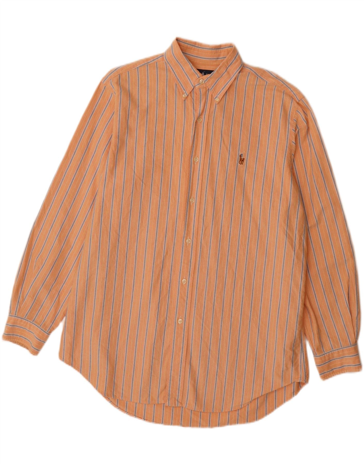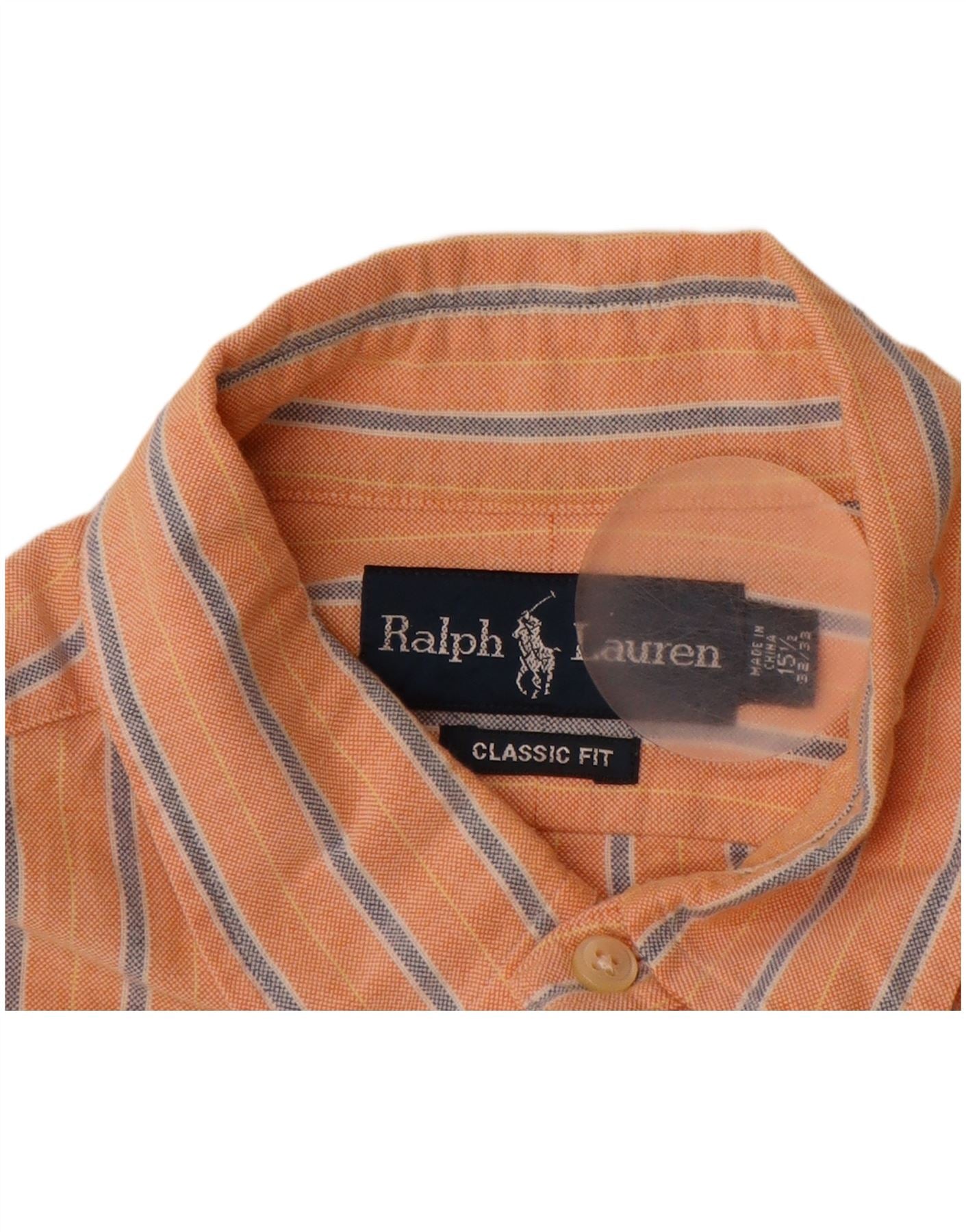 Camisa masculina de ajuste clássico RALPH LAUREN tamanho 15 1/2 listrado laranja médio