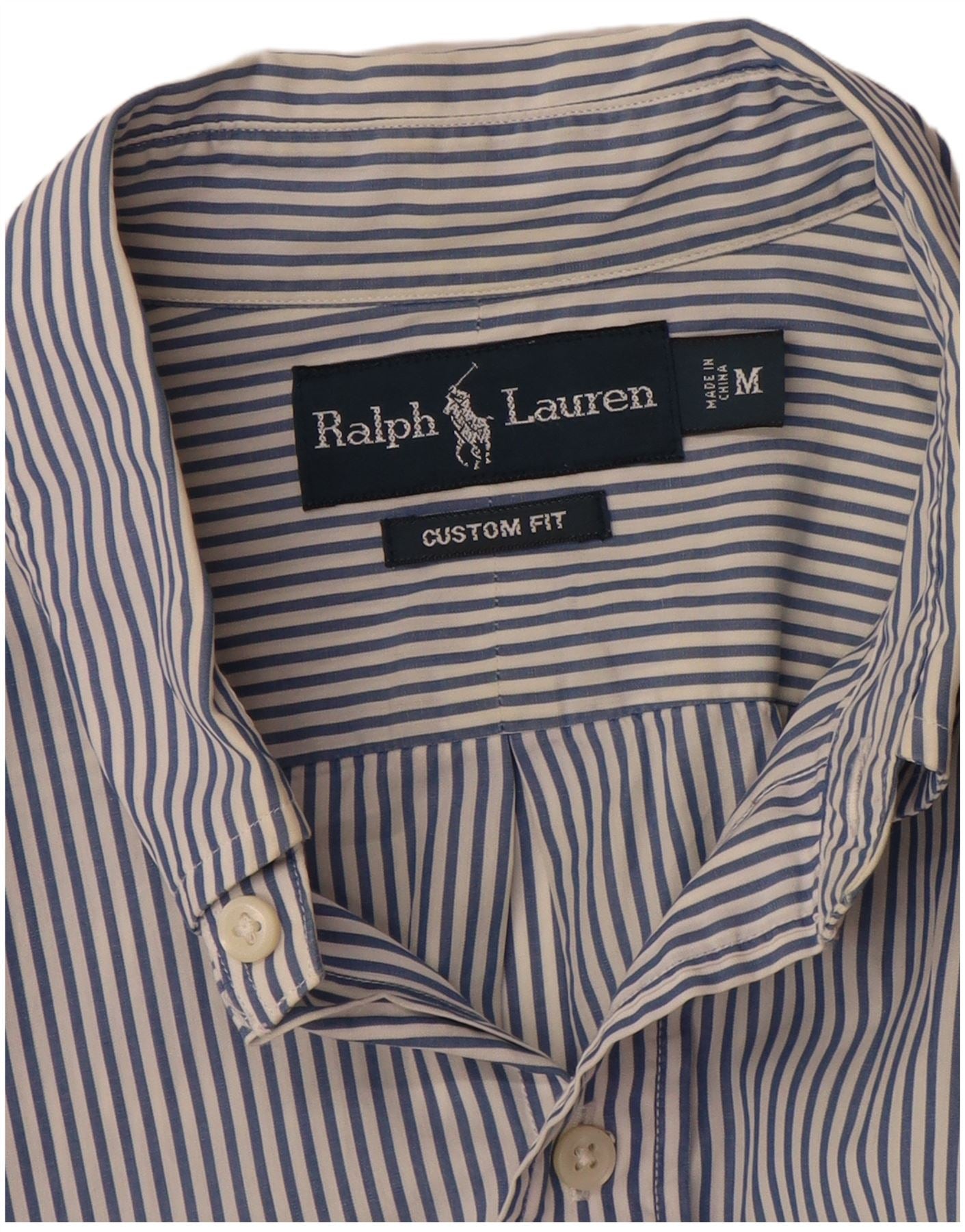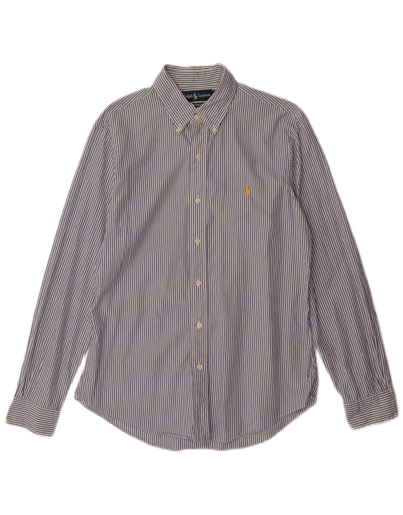 Camisa masculina de ajuste personalizado RALPH LAUREN de algodão listrado azul médio