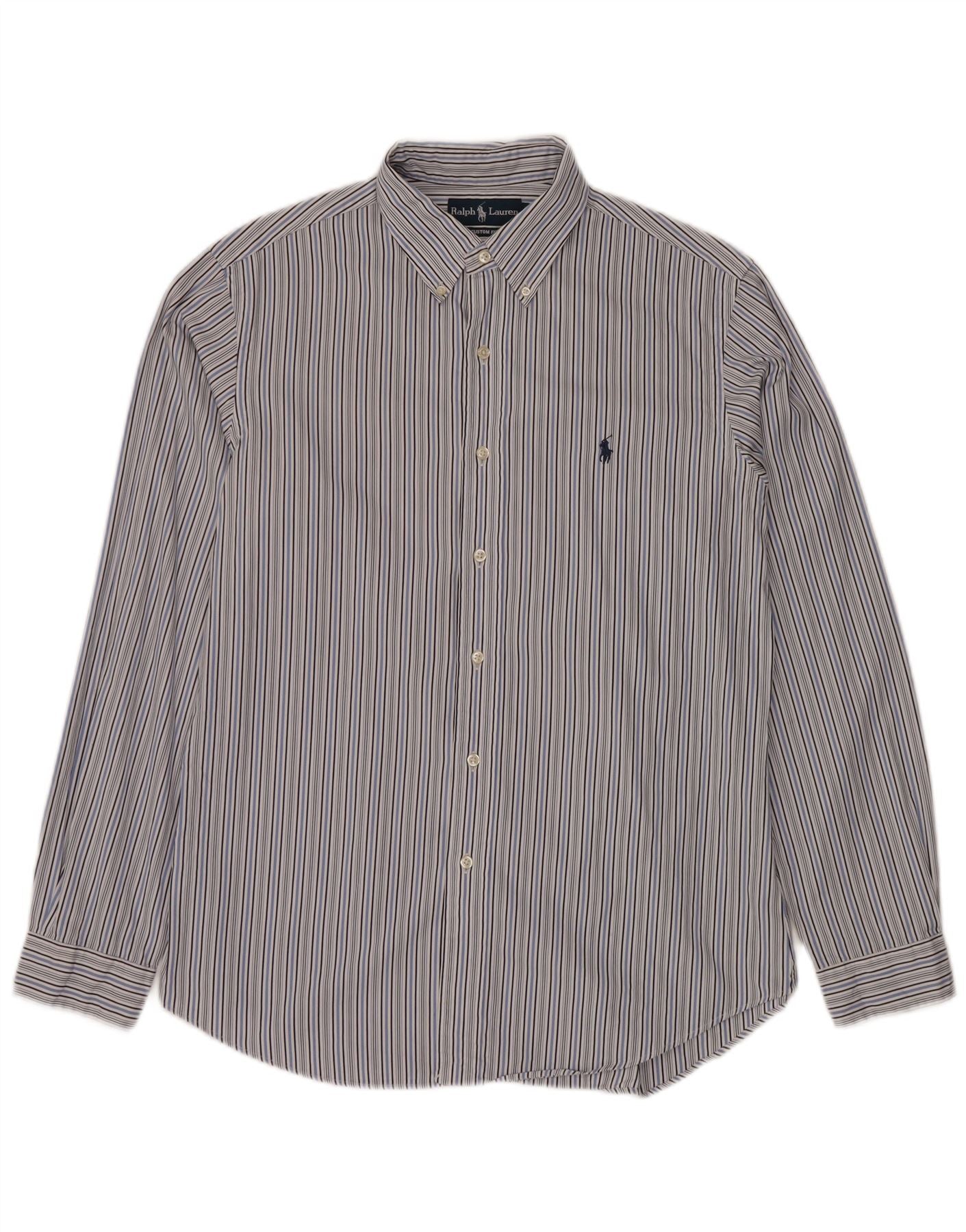 Camisa masculina de ajuste personalizado RALPH LAUREN tamanho 16 grande algodão listrado azul