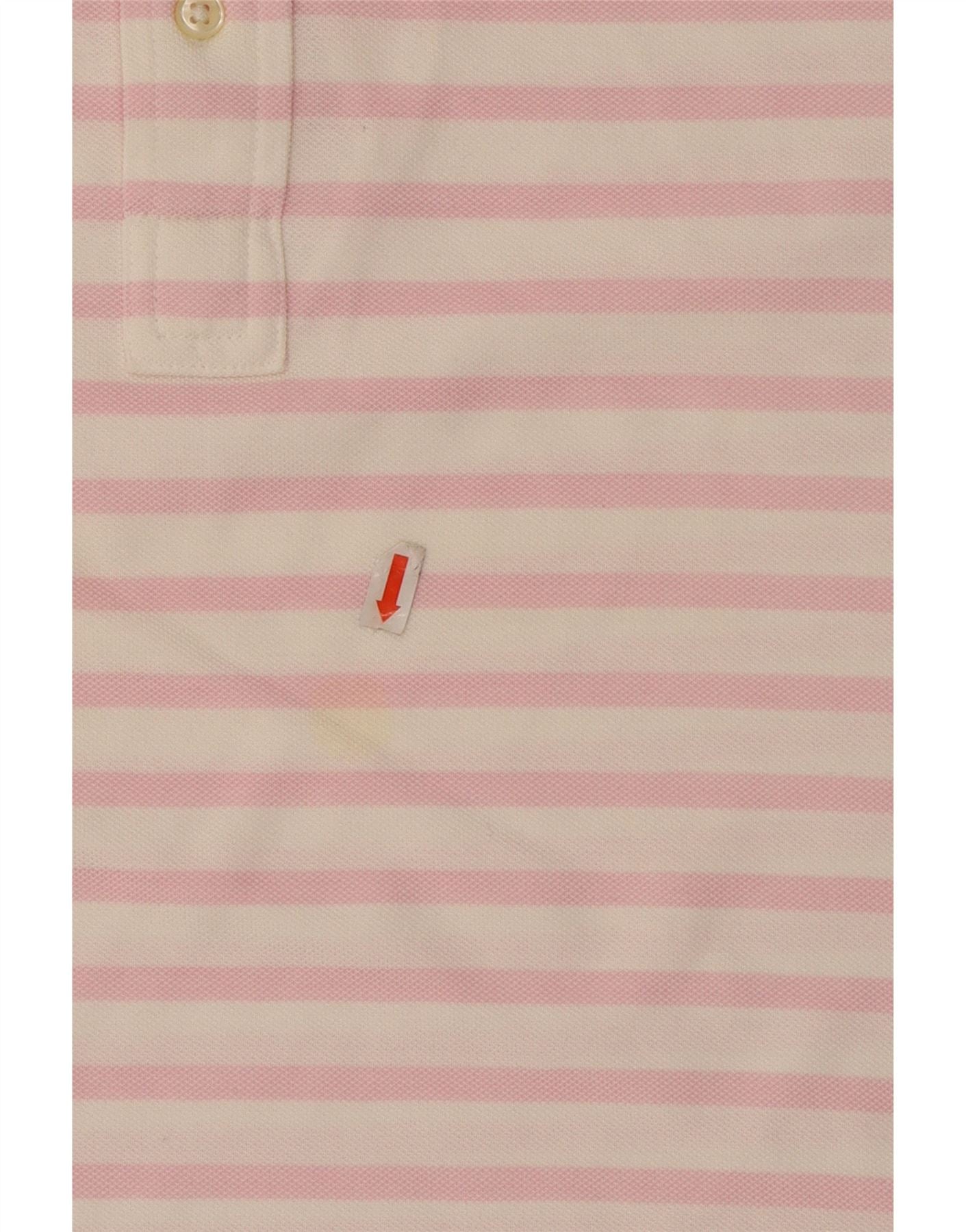 Camisa polo masculina de malha Oxford RALPH LAUREN de algodão listrado rosa médio
