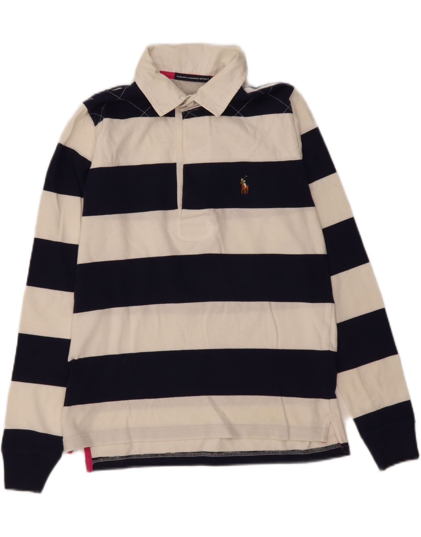 RALPH LAUREN Mens Long Sleeve Rugby Polo Shirt Medium Navy Blue Striped