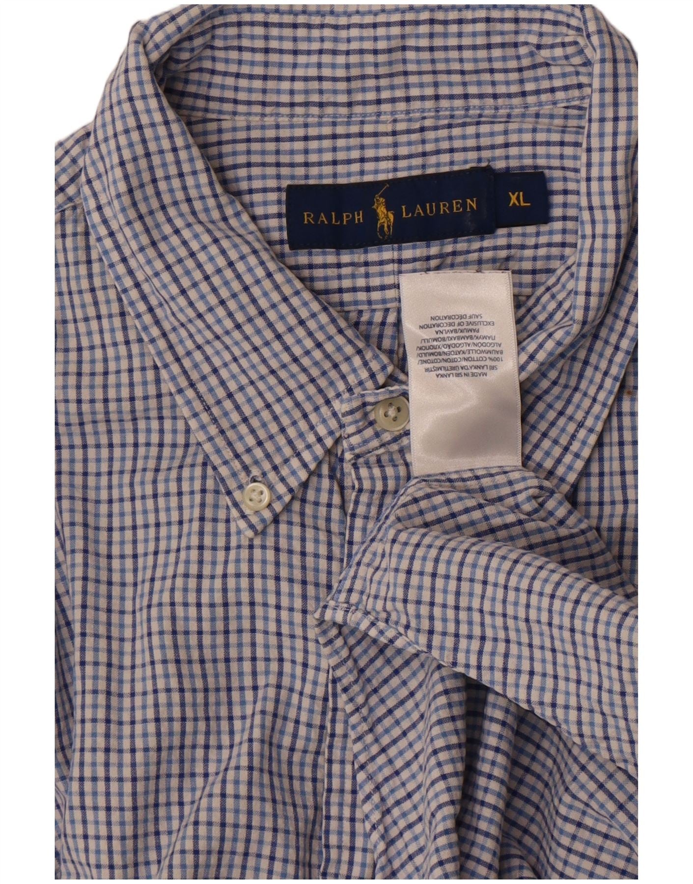 Camisa masculina de manga curta Ralph Lauren XL azul xadrez algodão