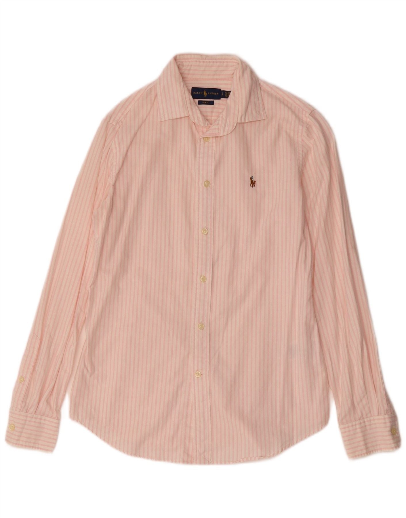 Camisa masculina Slim Fit Ralph Lauren pequena listrada rosa de algodão
