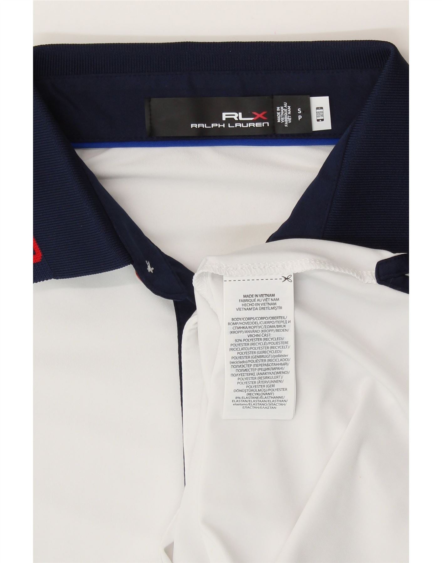 Camisa polo masculina Ralph Lauren EUA pequena poliéster listrada branca