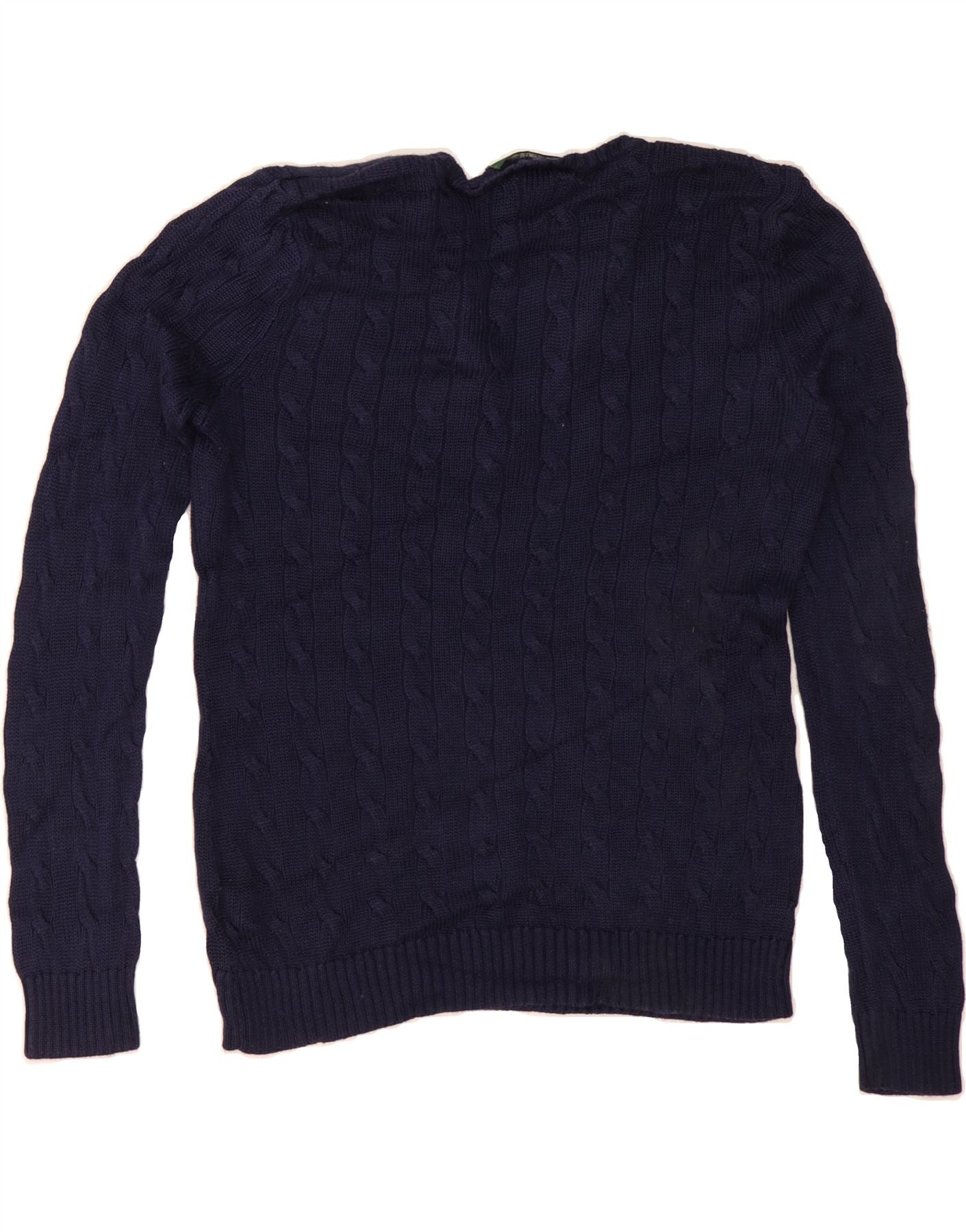 RALPH LAUREN Suéter masculino pequeno com decote em V pequeno algodão azul marinho