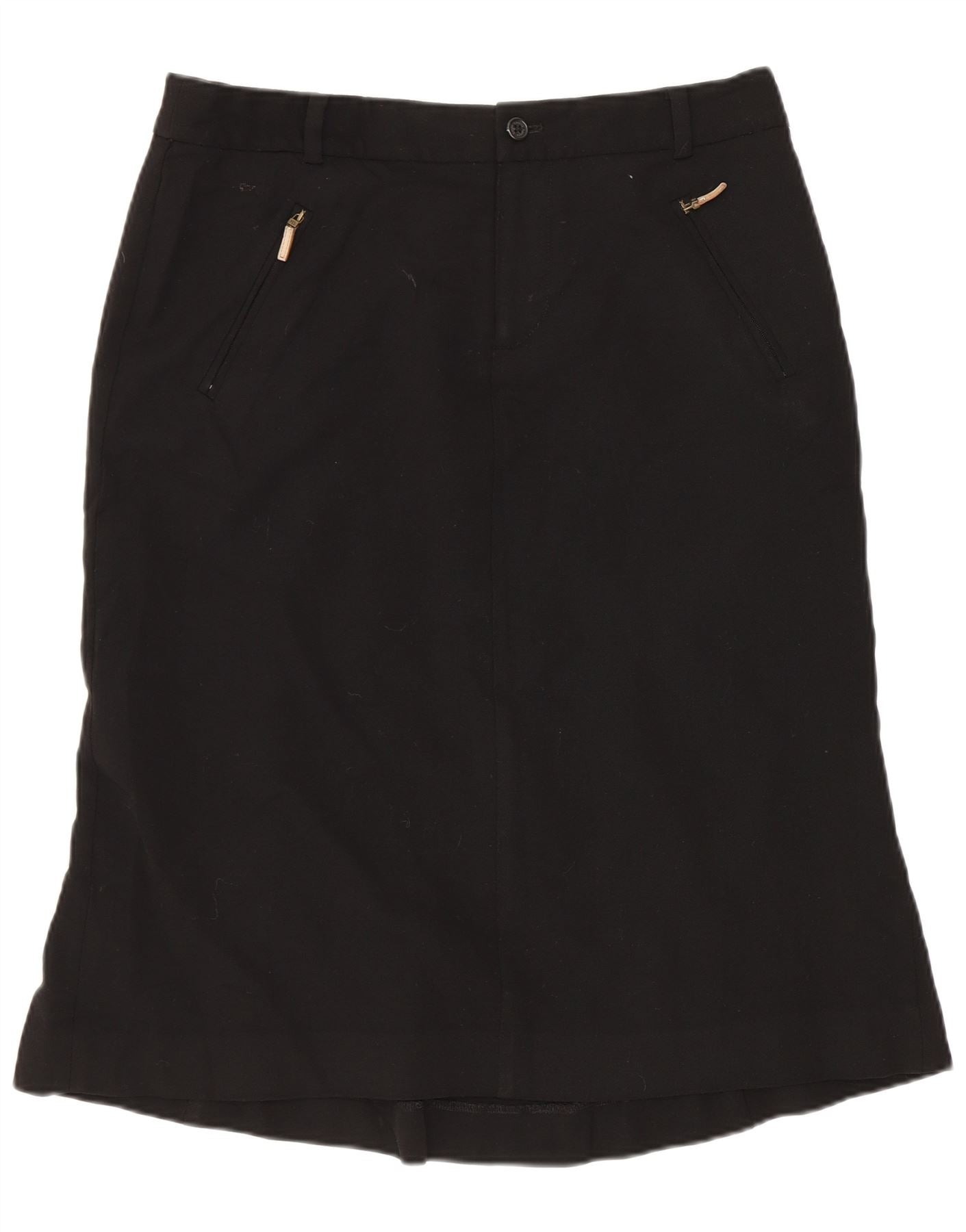 - Descrição da IA: Esta saia feminina Ralph Lauren com corte A é confeccionada em uma luxuosa mistura de lã preta com um estiramento sutil. Apresenta uma silhueta clássica em linha A, caindo para um comprimento midi. O ajuste regular garante conforto e elegância. Um fecho de botão e zíper protege a cintura. Bolsos práticos com detalhes em zíper adicionam detalhes funcionais. É totalmente forrado para um caimento suave.