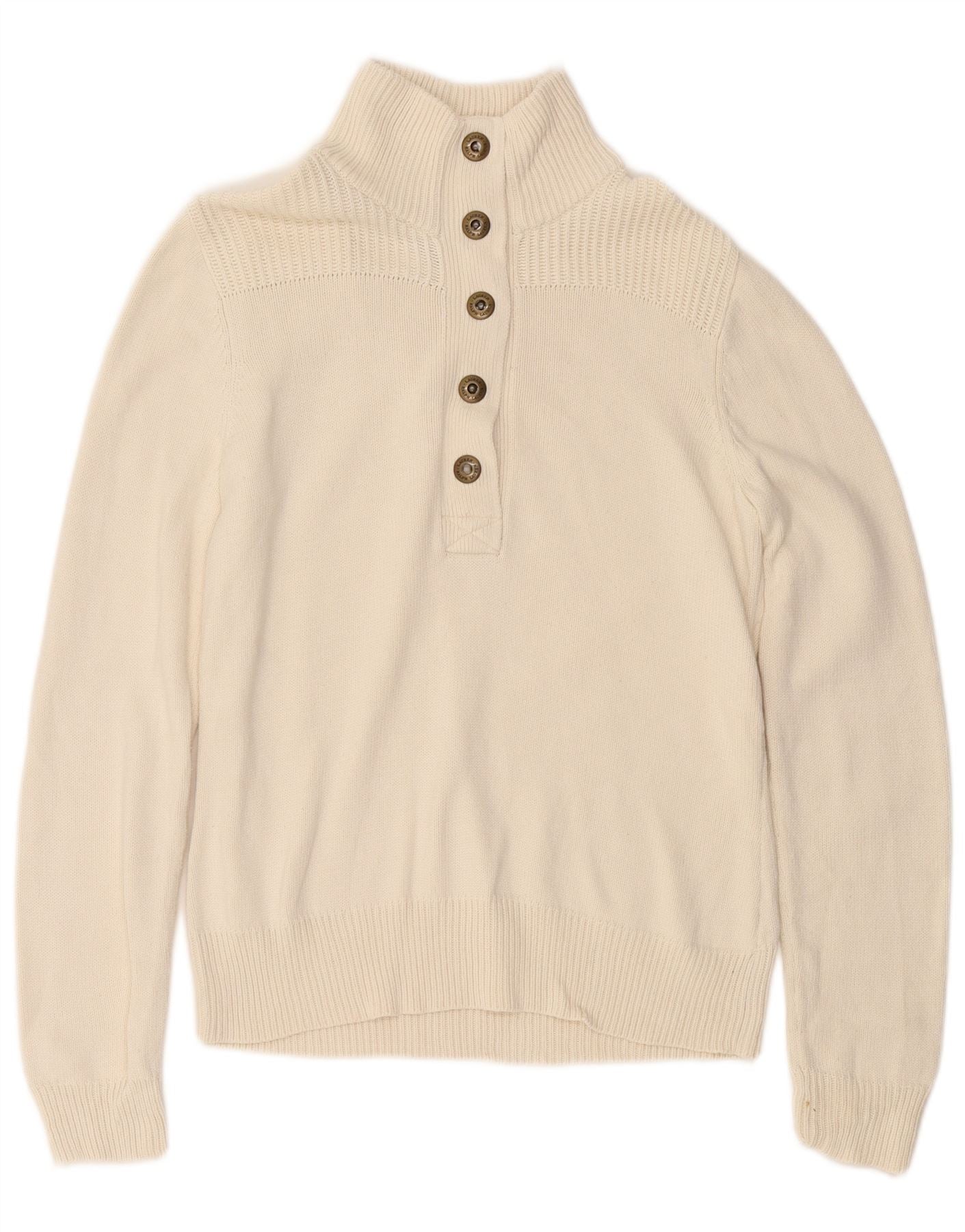 Suéter feminino Ralph Lauren com gola e botão, Reino Unido 14, algodão branco médio