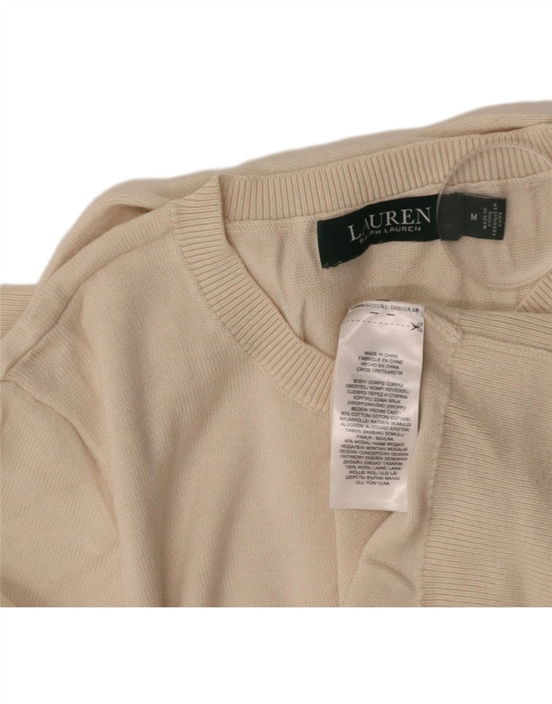 RALPH LAUREN Womens Crew Neck Jumper Sweater UK 14 Medium Off White