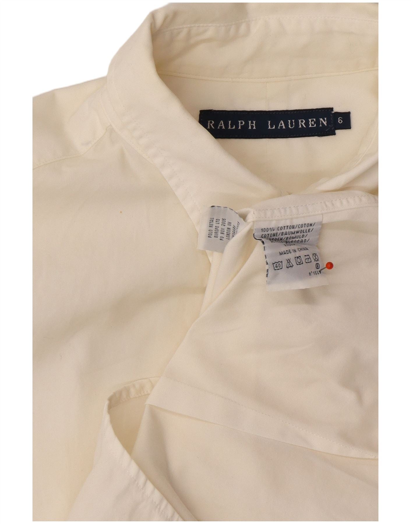- AI Description: This Ralph Lauren boys shirt is crafted from 100 percent woven cotton in a crisp off white. It features a classic collared neckline and long sleeves. The button-up front ensures a neat finish. A regular fit offers comfortable wear. A subtle embroidered logo adds a signature touch. This timeless piece is perfect for smart casual occasions.