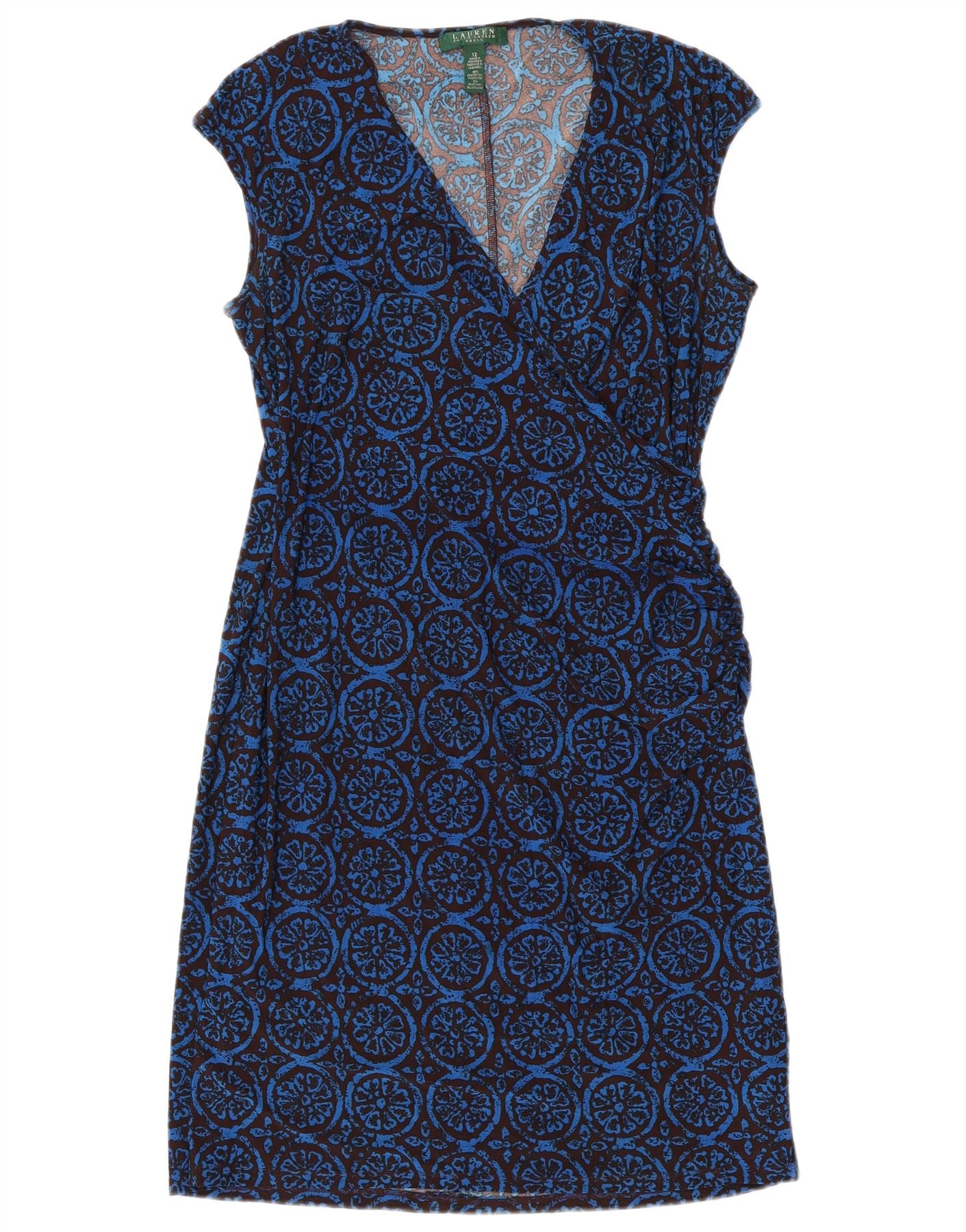 Vestido feminino RALPH LAUREN com bainha sem mangas EUA 12 grande azul floral