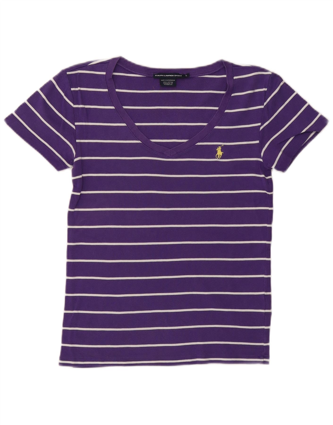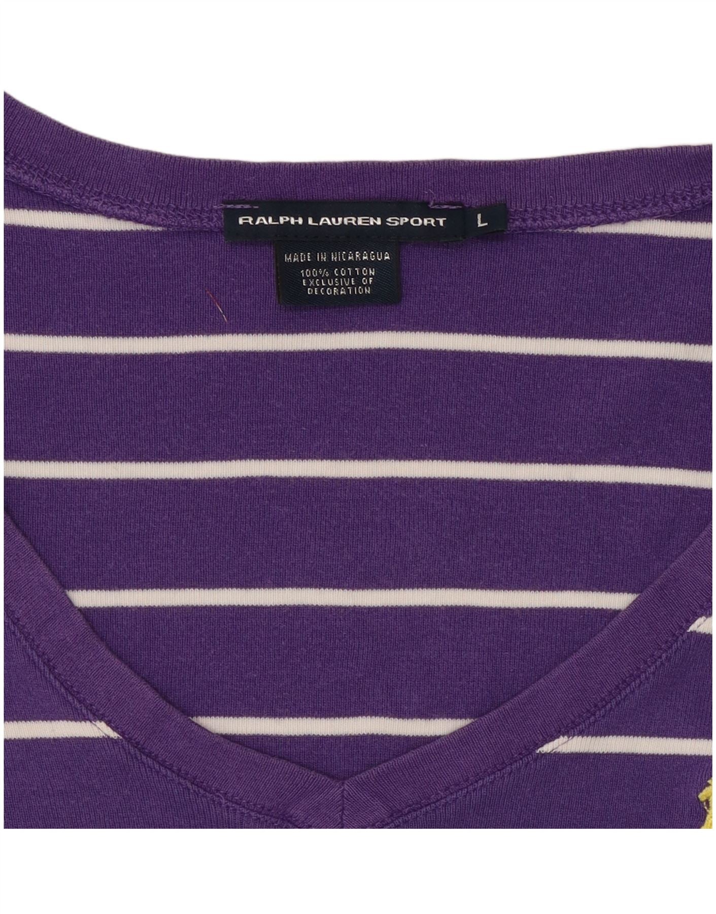 Camiseta feminina RALPH LAUREN UK 14 grande algodão listrado roxo