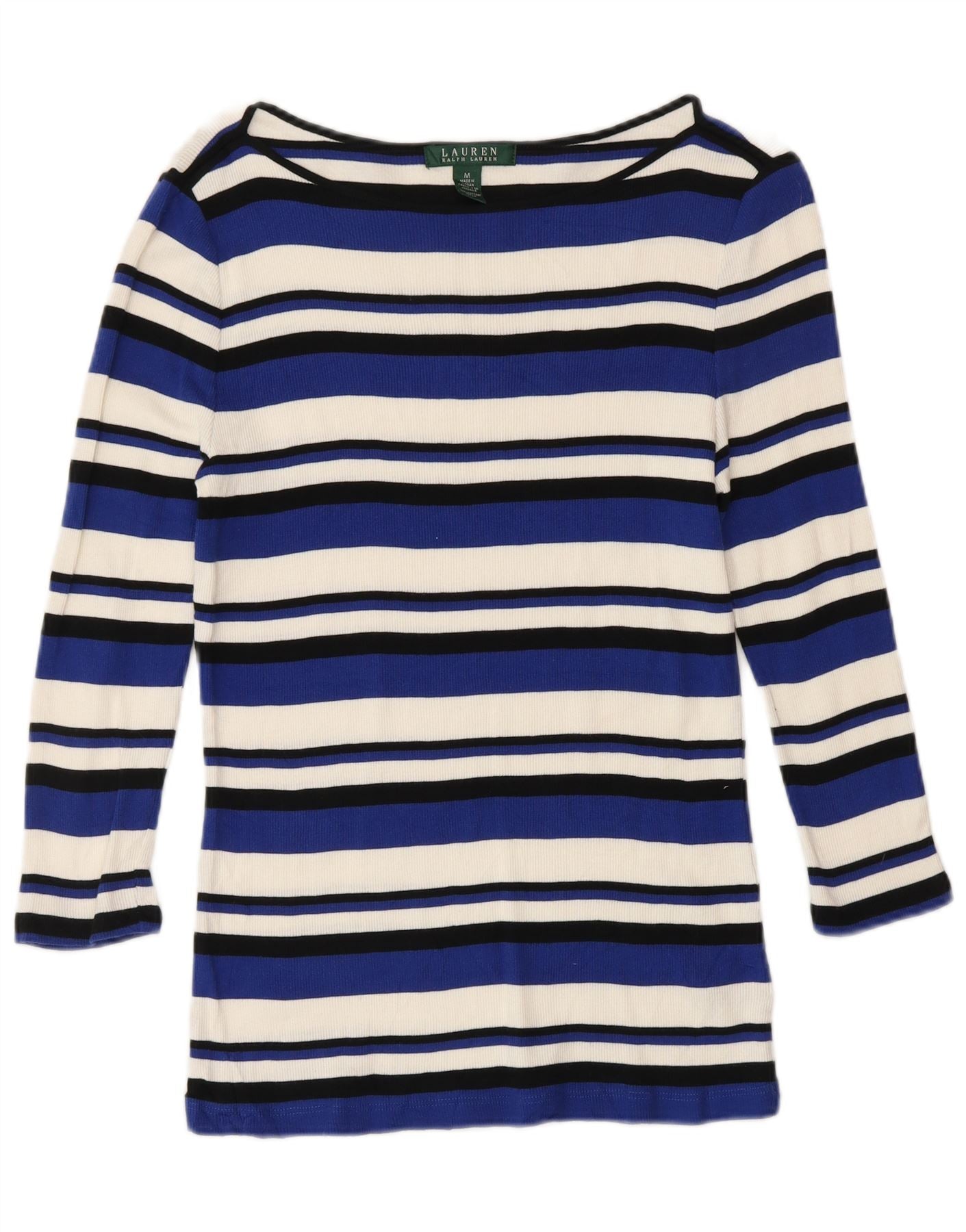 Ralph Lauren Top feminino manga 3/4 Reino Unido 12 algodão listrado azul médio