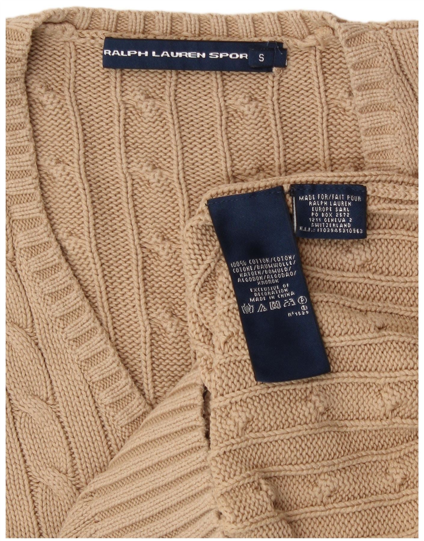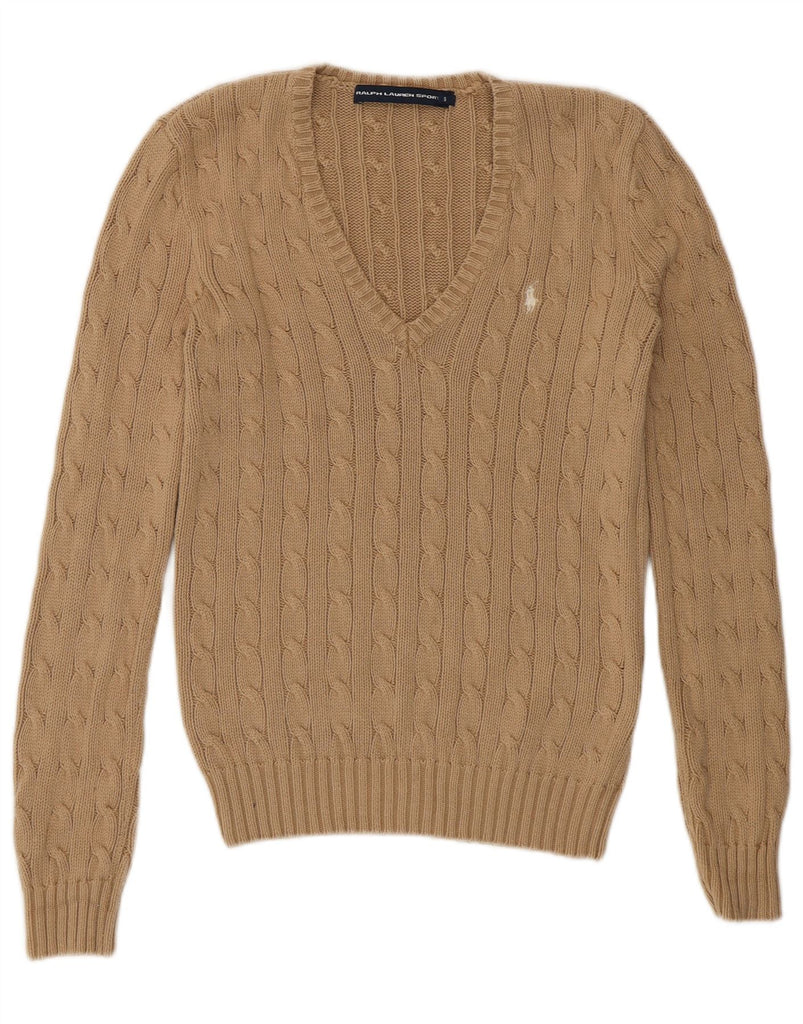 RALPH LAUREN Womens V-Neck Jumper Sweater UK 10 Small Beige Cotton