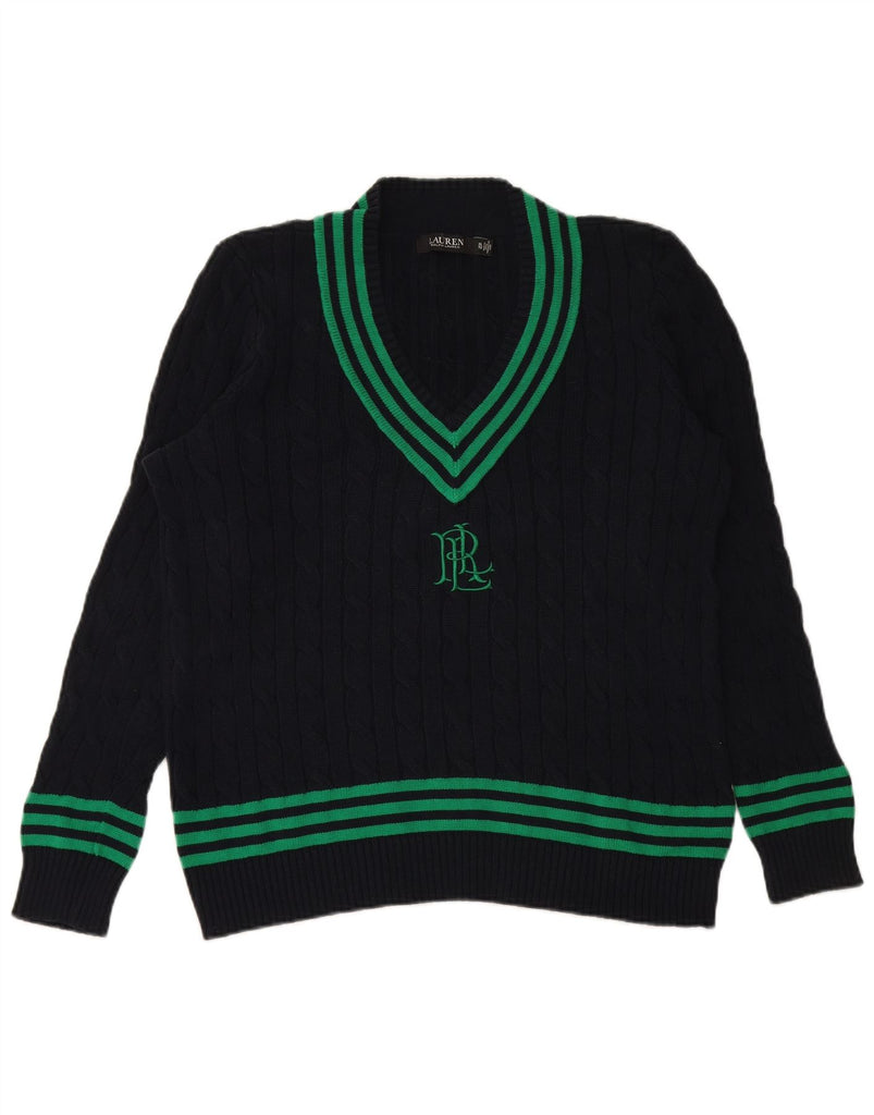 RALPH LAUREN Womens V-Neck Jumper Sweater UK 18 XL Navy Blue Cotton