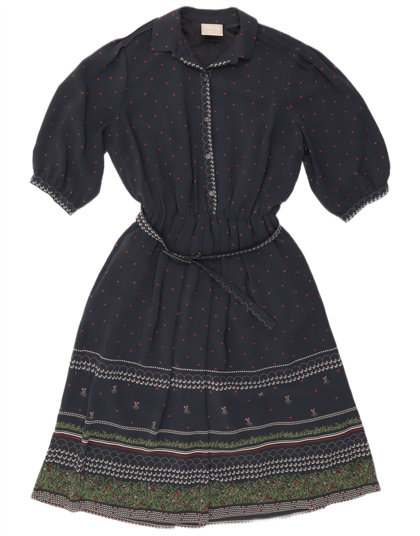 Vestido feminino RALPH manga 3/4 linha A EU 46 XL azul marinho floral poliéster