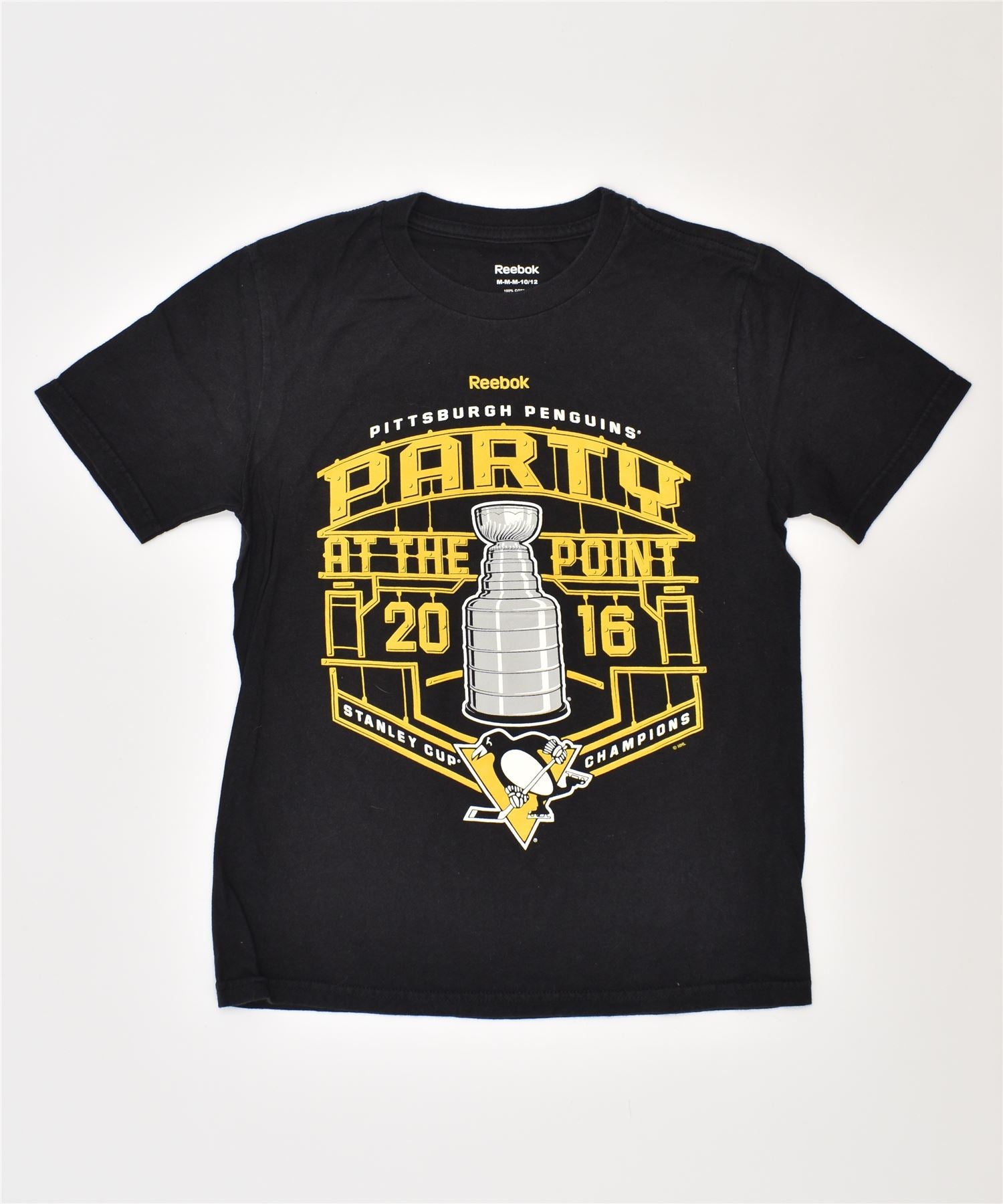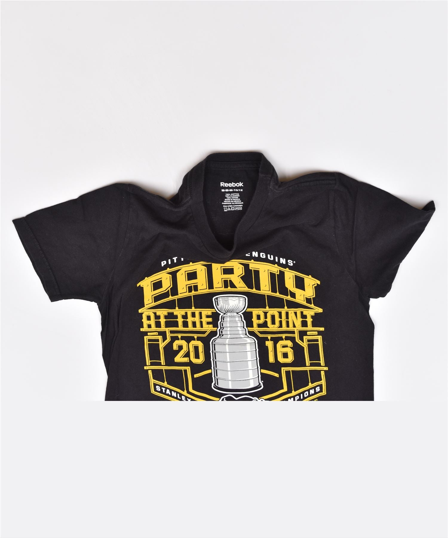 REEBOK Boys Graphic Camiseta Top 10-11 Anos Médio Algodão Preto