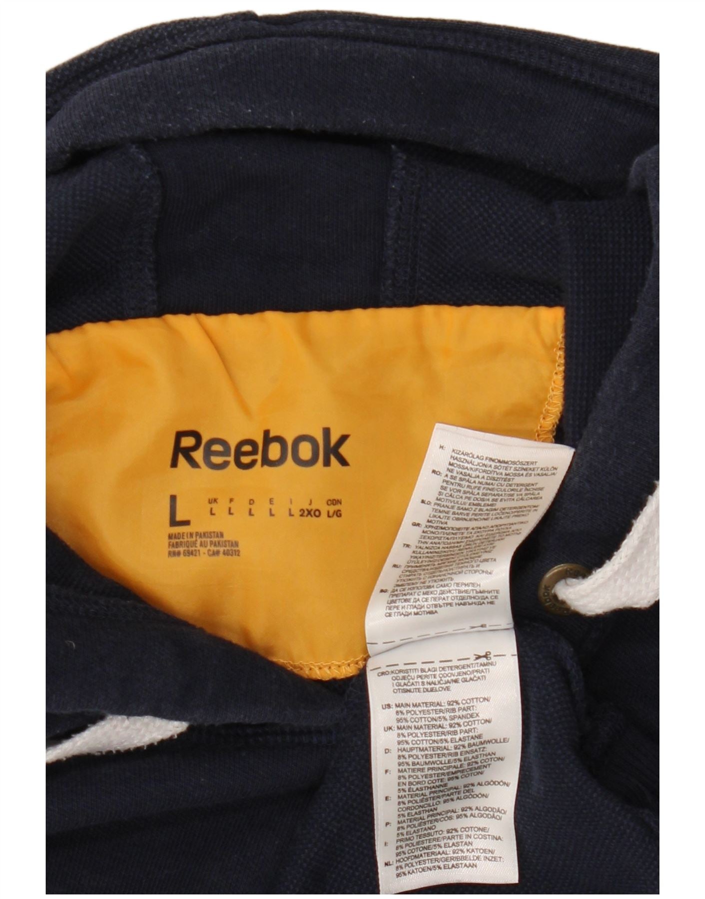 Suéter com capuz gráfico masculino REEBOK grande algodão azul marinho