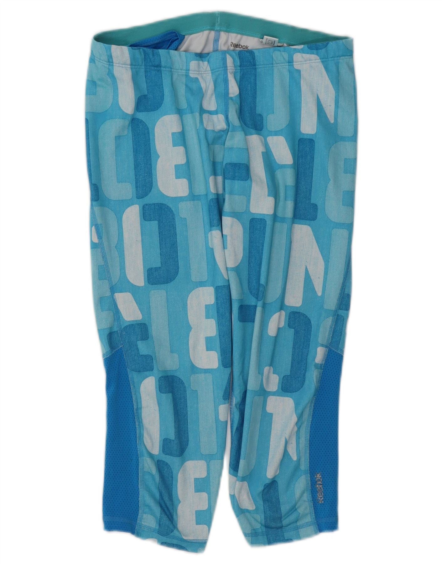 Calça feminina REEBOK com estampa gráfica UK 12 bloco colorido azul médio