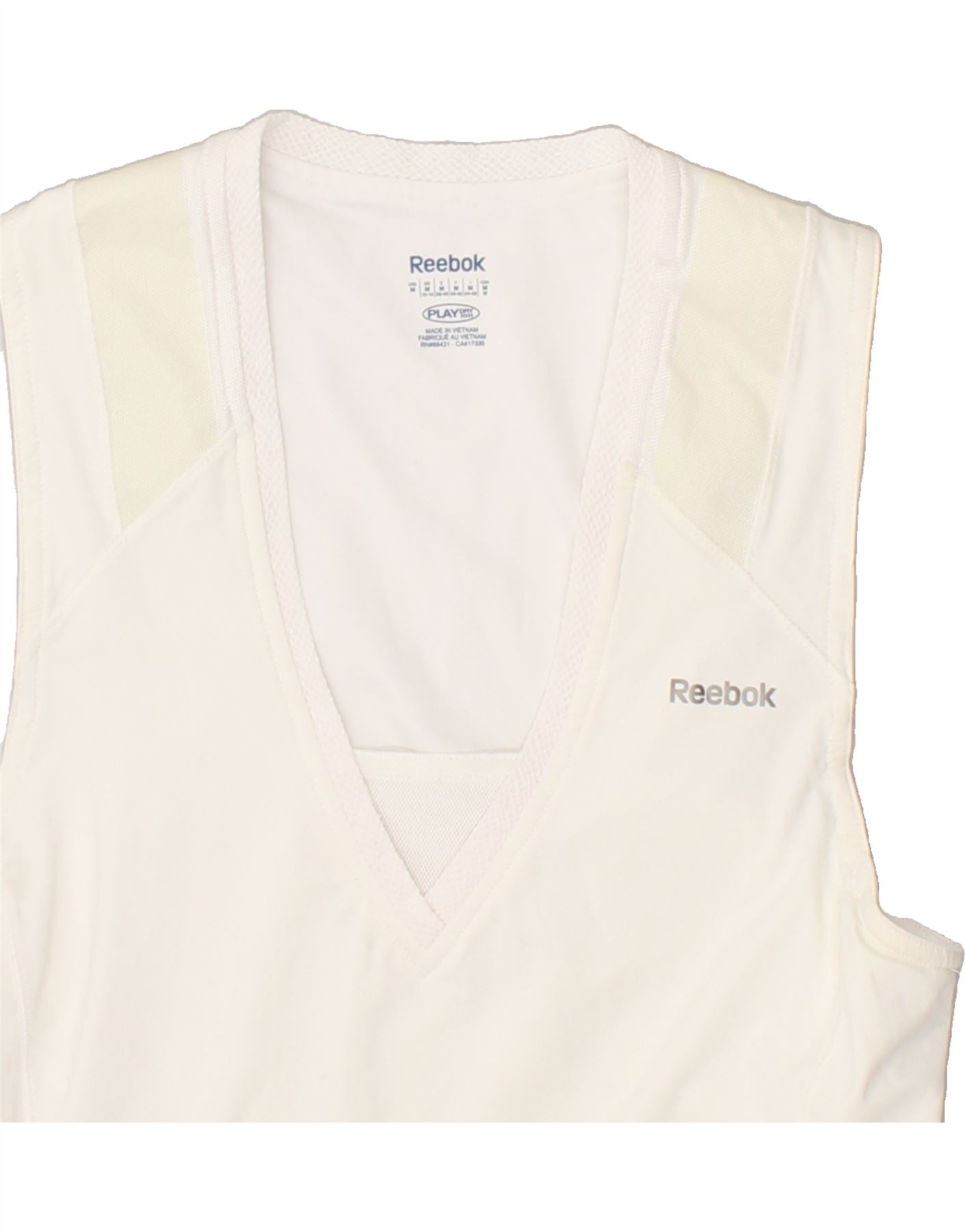 REEBOK Womens Graphic Vest Top UK 12 Médio Poliéster Branco