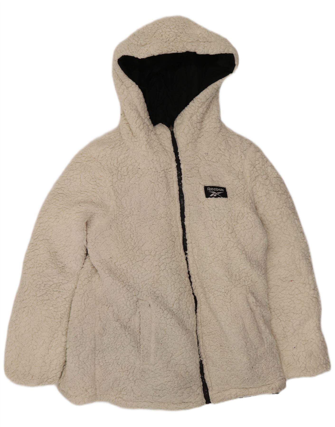 Jaqueta acolchoada reversível com capuz feminino Reebok UK 14 poliéster preto médio