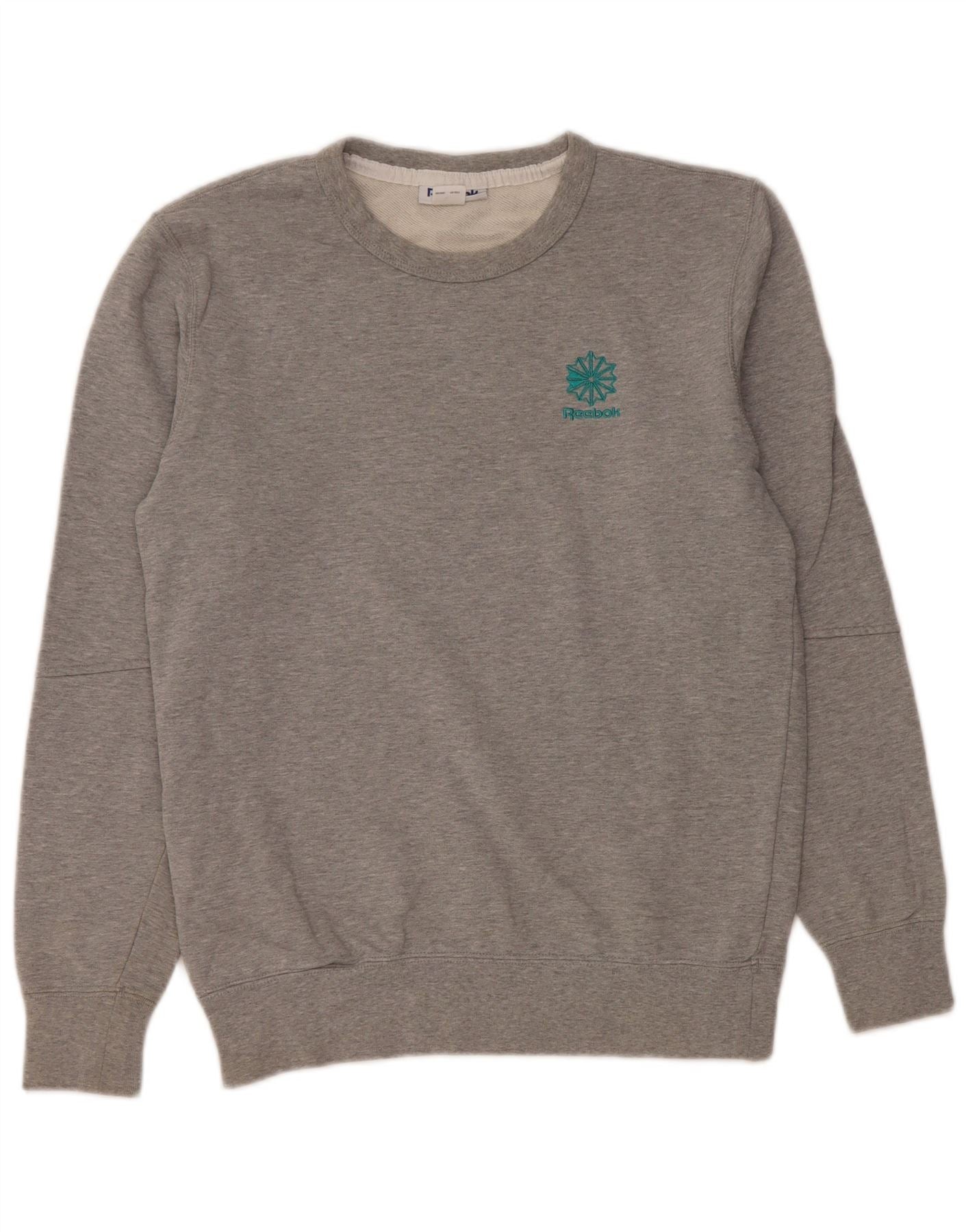 REEBOK moletom feminino oversized jumper UK 10 pequeno algodão cinza