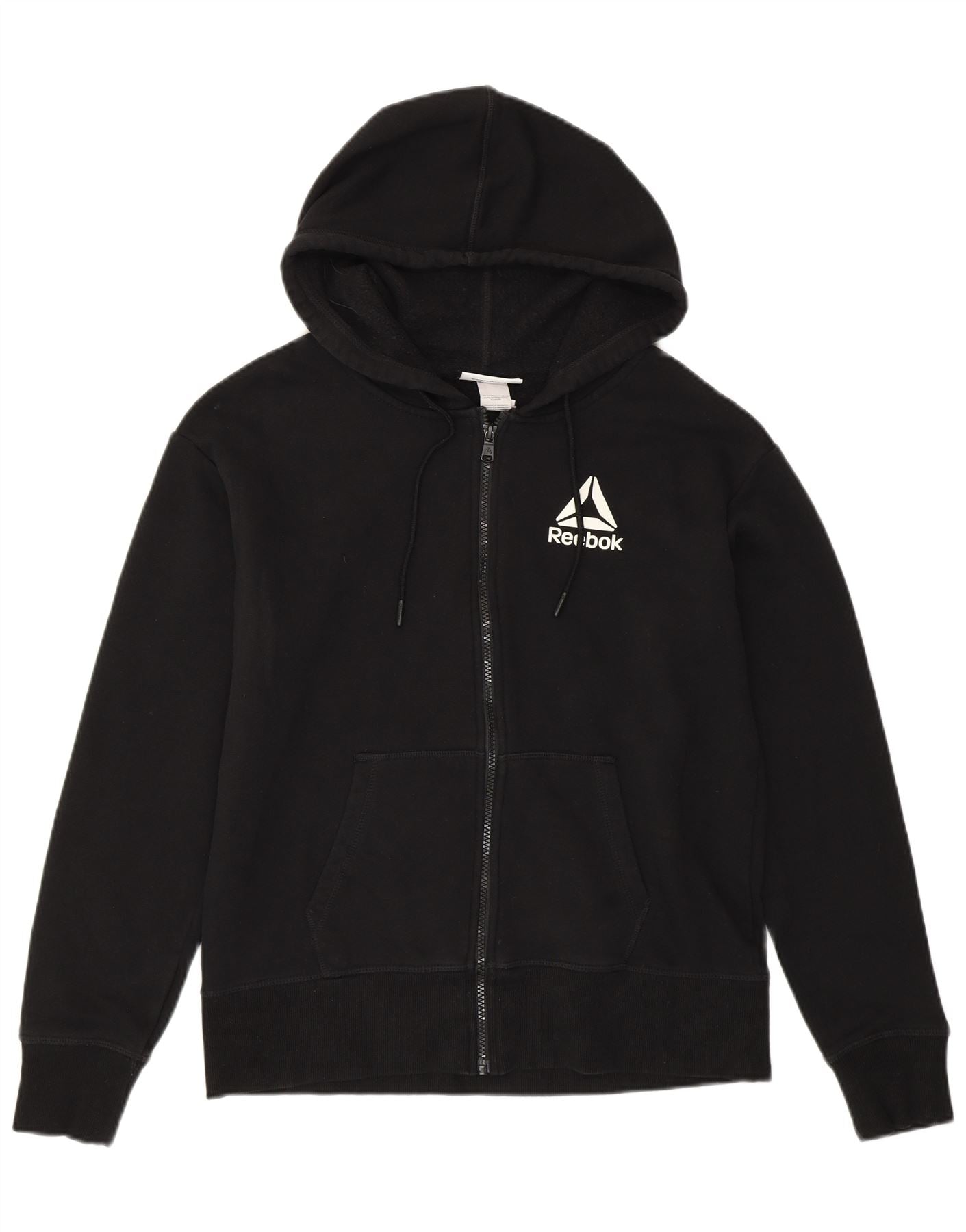 Suéter feminino com capuz e zíper REEBOK Reino Unido 14 algodão preto médio