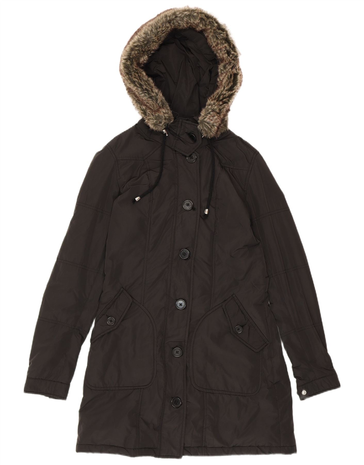 Jaqueta parka feminina com capuz REFRIGUE UK 10 poliéster preto pequeno