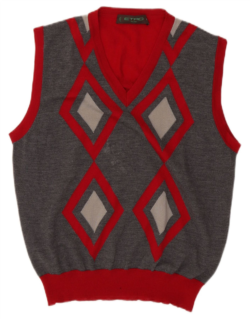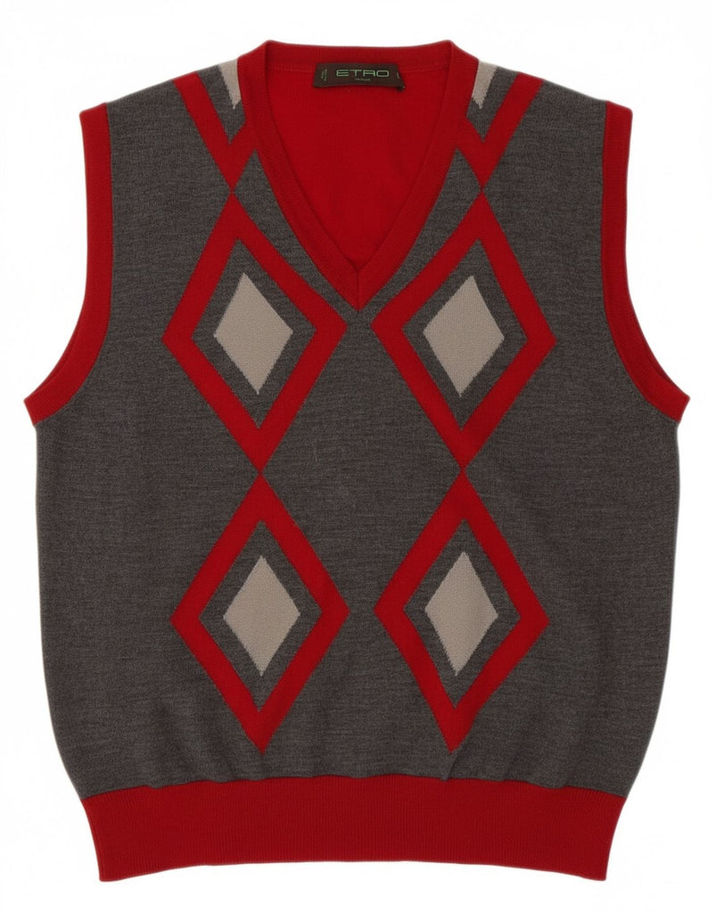 Regata feminina ETRO Milano Vest Reino Unido 16 grande vermelho Argyle/lã diamante