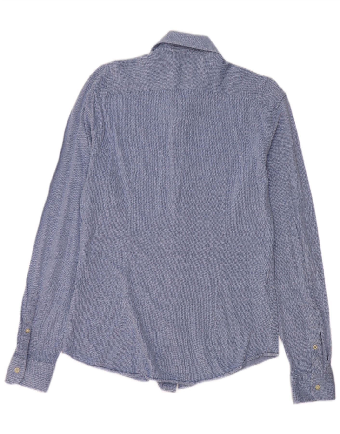 Camisa masculina Reiss Slim Fit de algodão azul médio