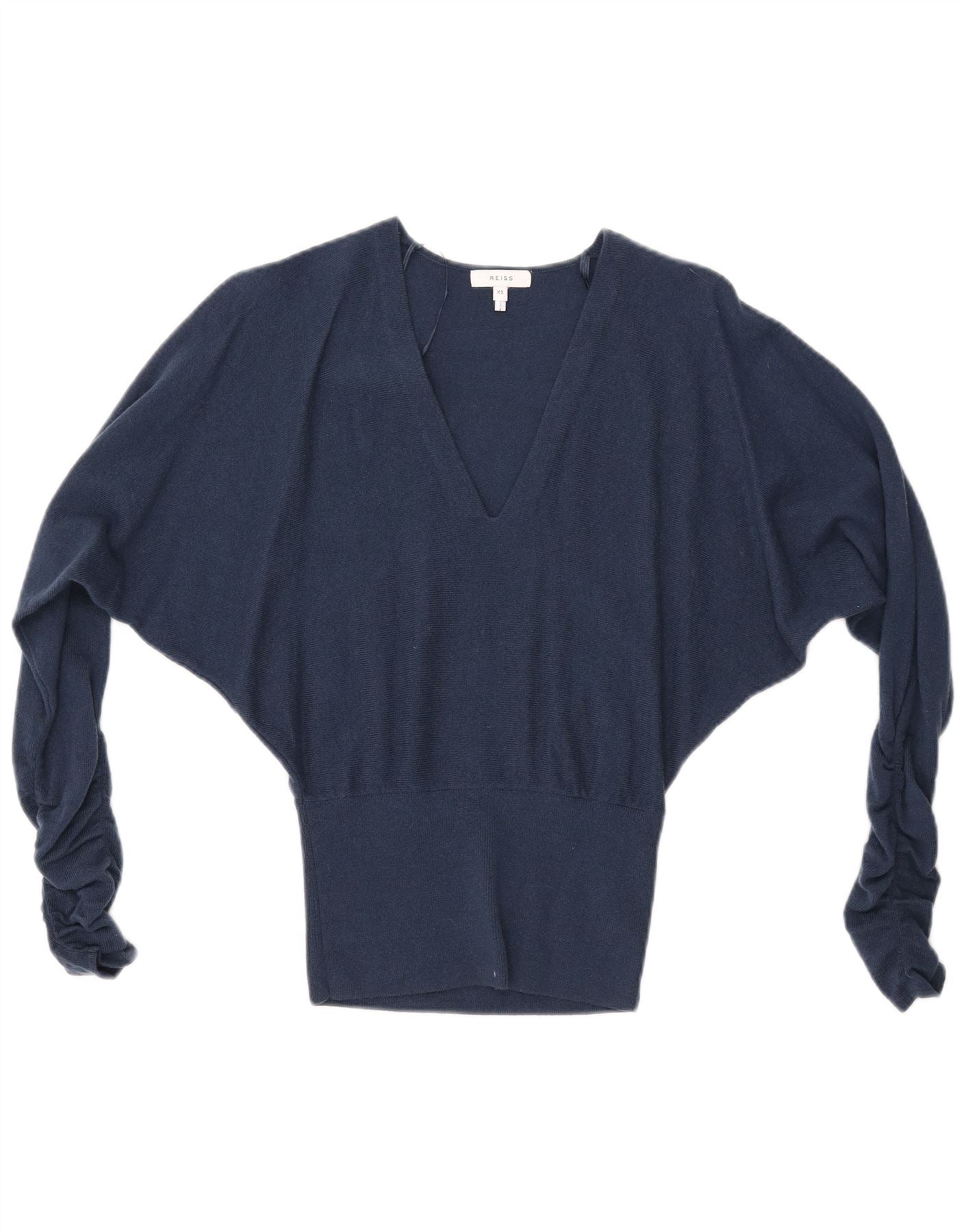 Suéter feminino REISS Batwing com decote em V Reino Unido 6 XS azul marinho lã