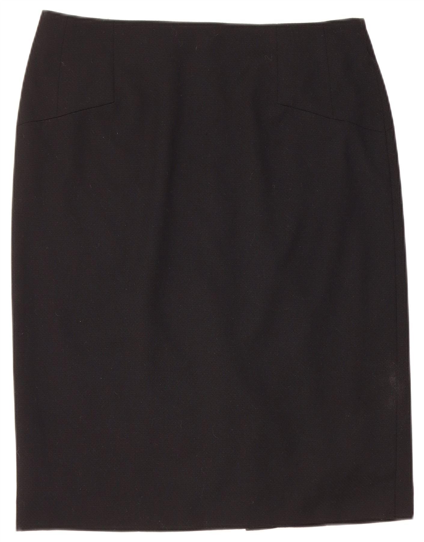 Saia reta feminina REISS Reino Unido 14 grande W32 lã preta