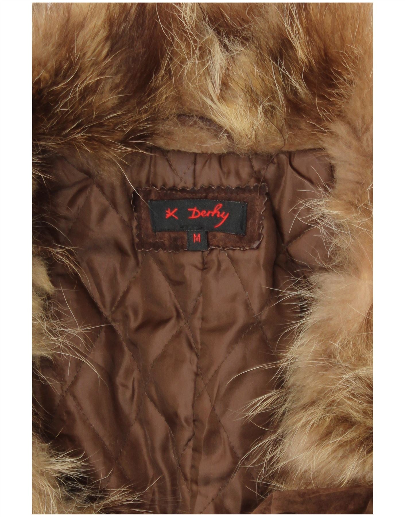 Sobretudo feminino de camurça Rene Derhy Reino Unido 14 couro marrom médio