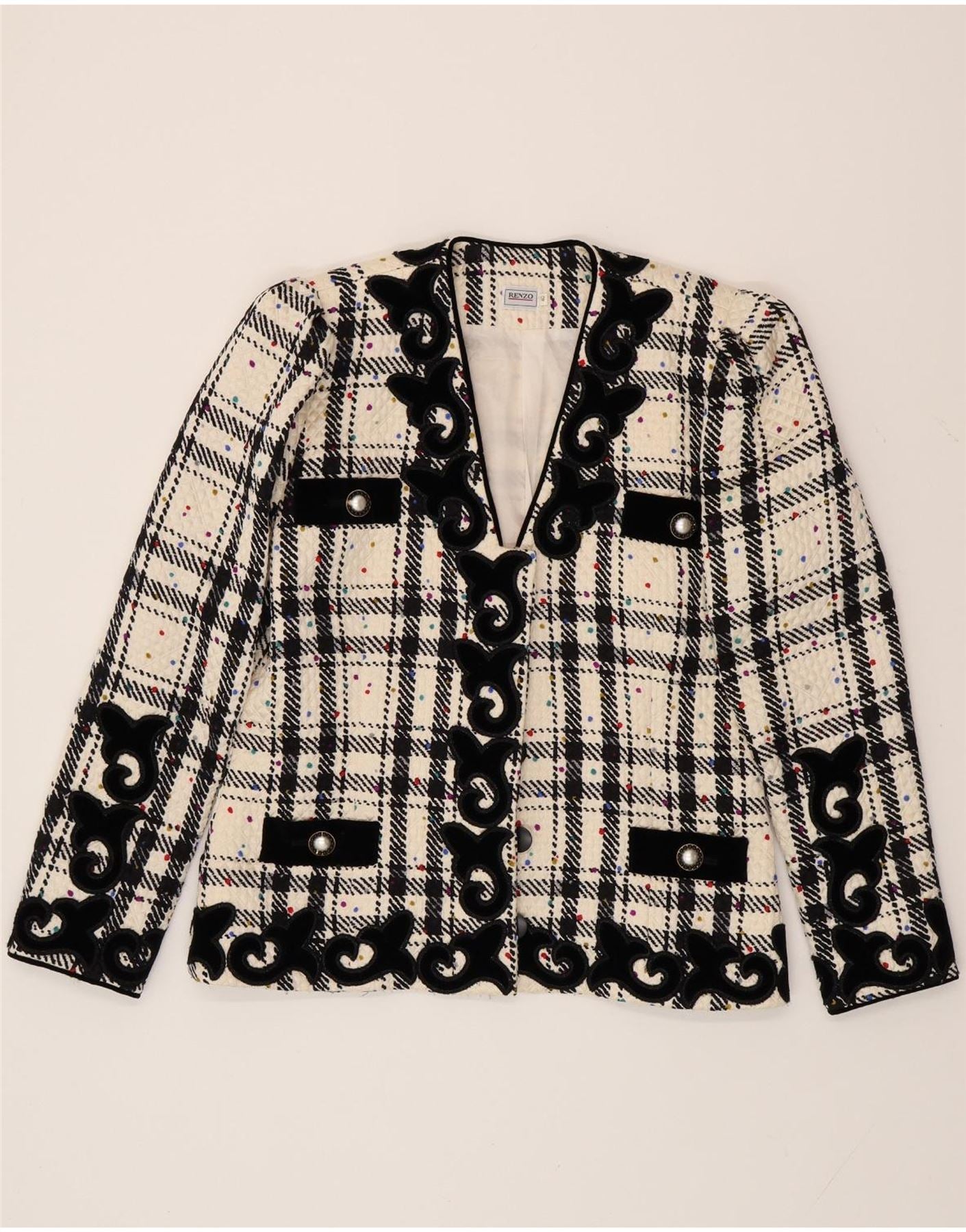 RENZO Jaqueta blazer feminina superdimensionada IT 40 pequena xadrez branca