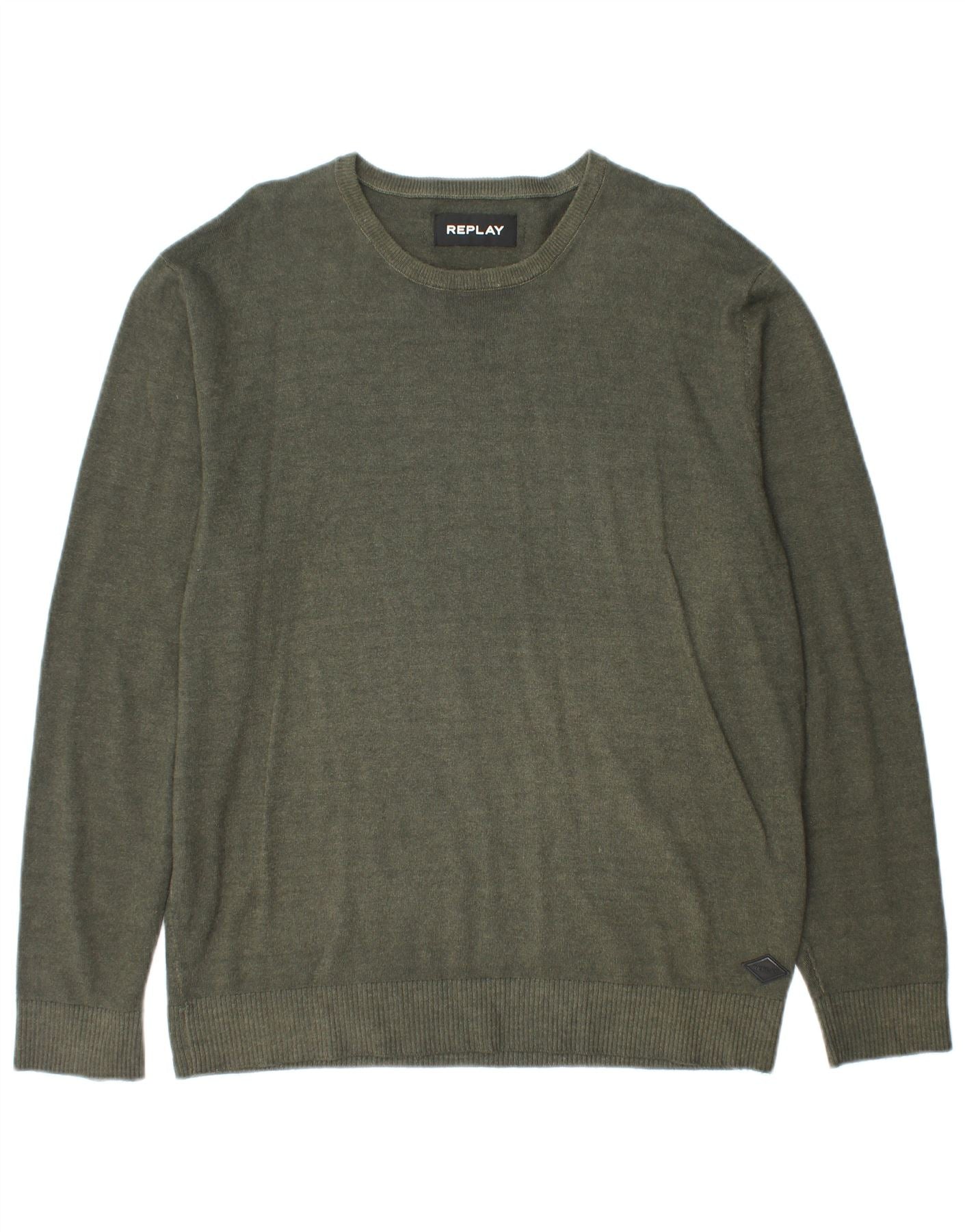 Suéter masculino REPLAY com gola canoa XL de lã cáqui