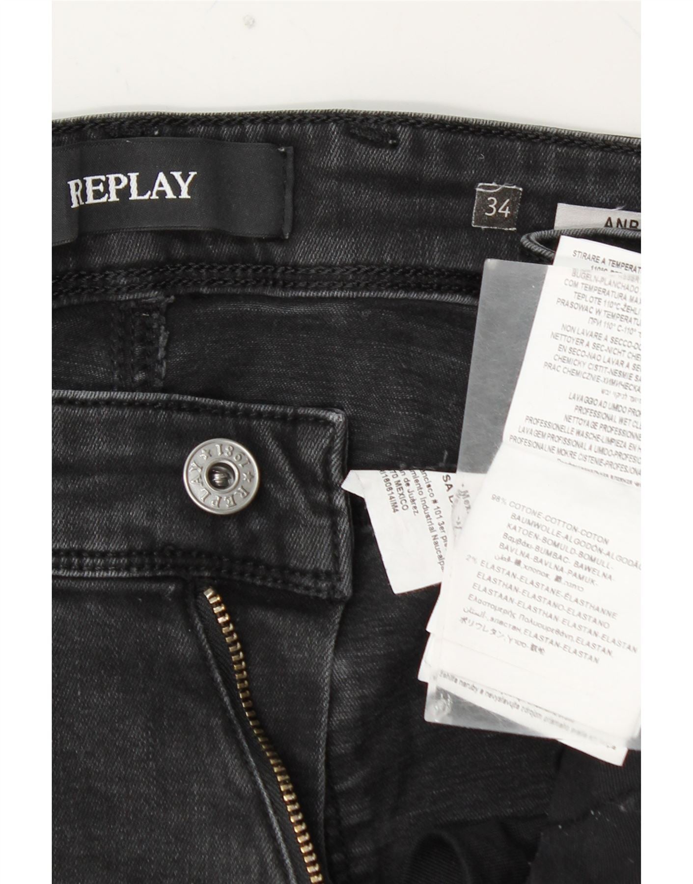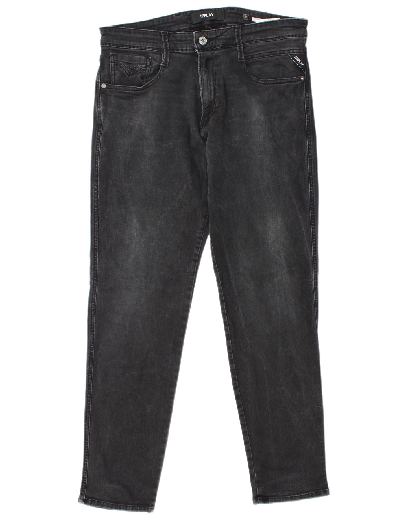 REPLAY Jeans feminino Anbass Slim W34 L30 algodão cinza
